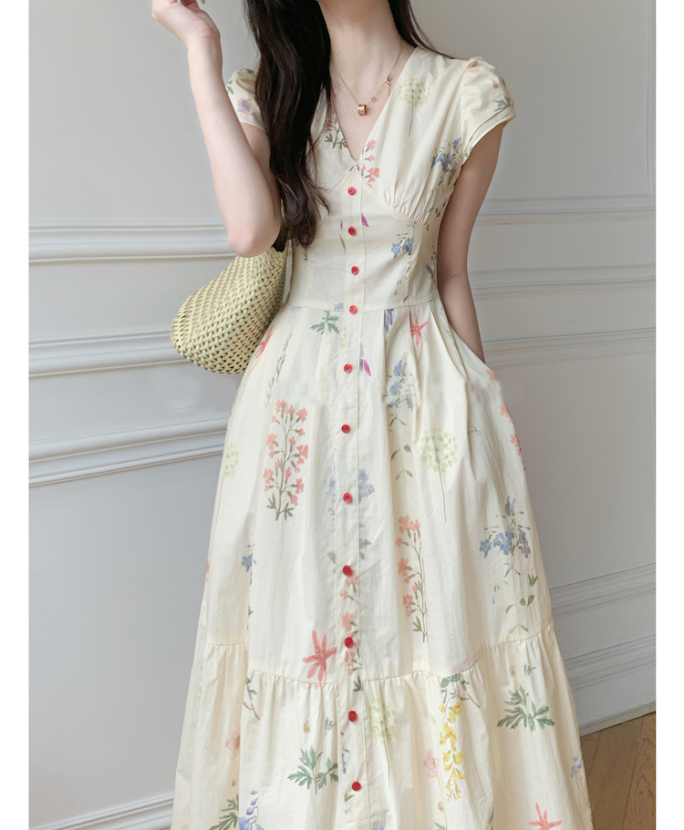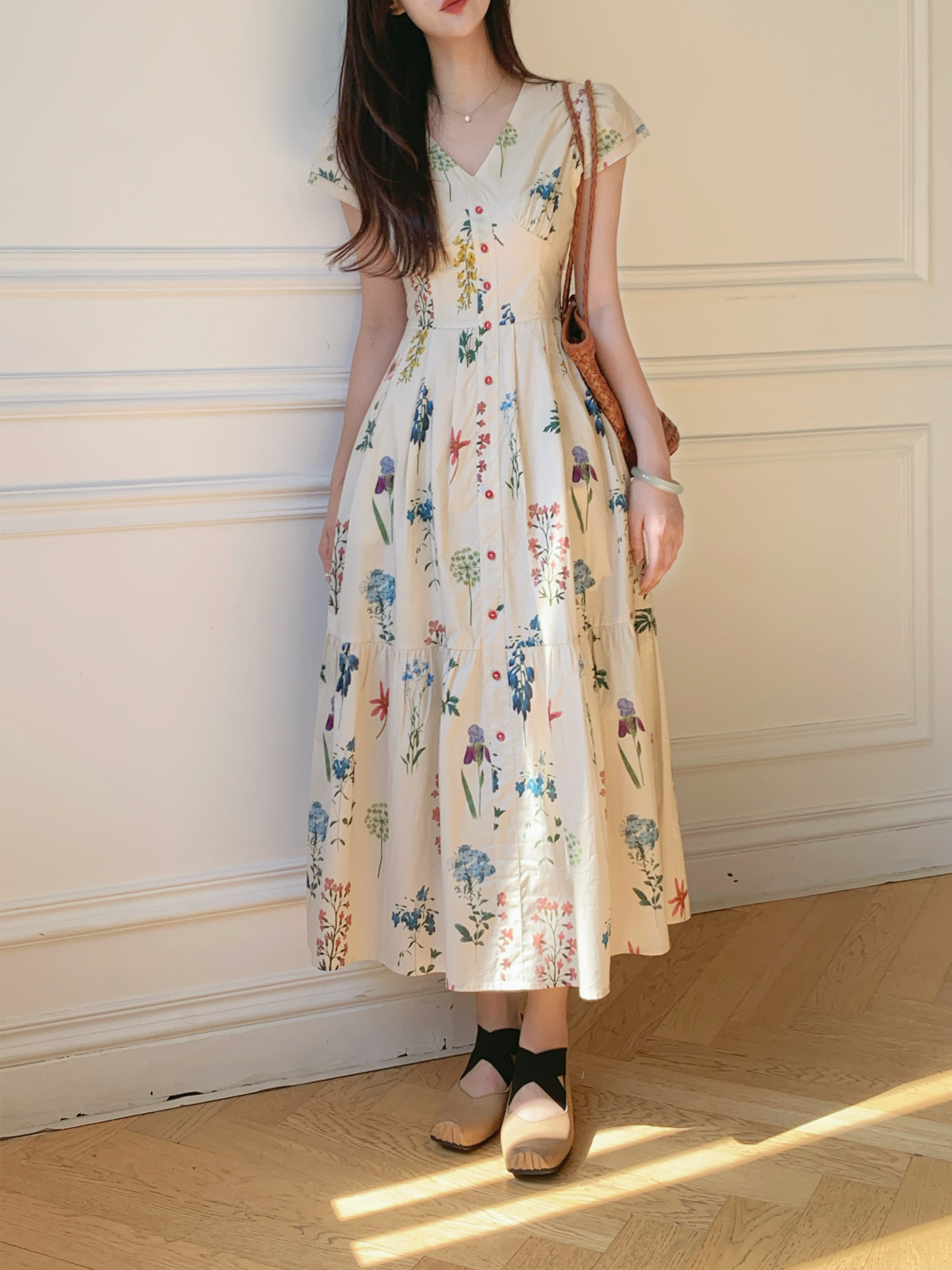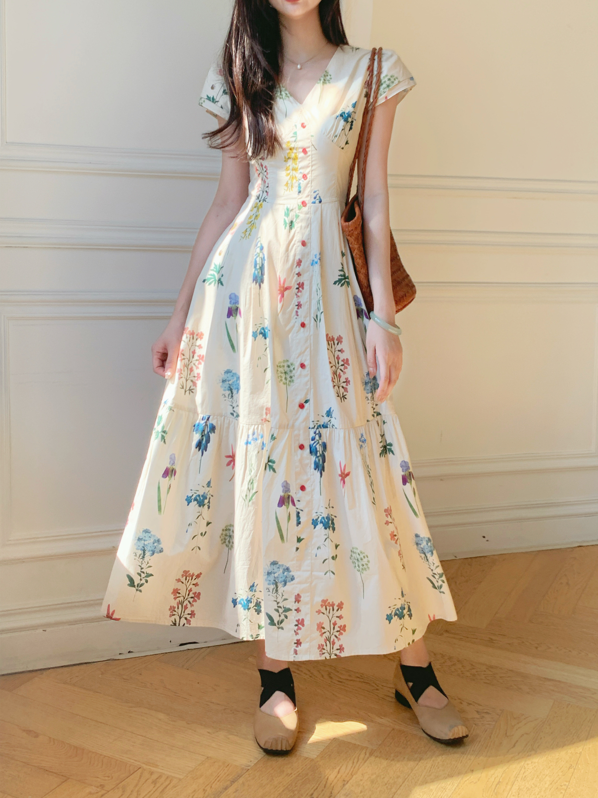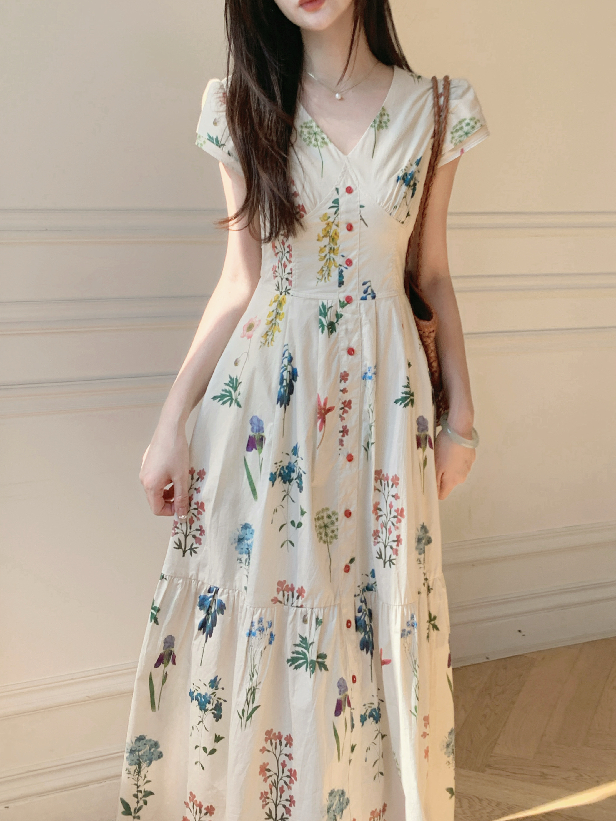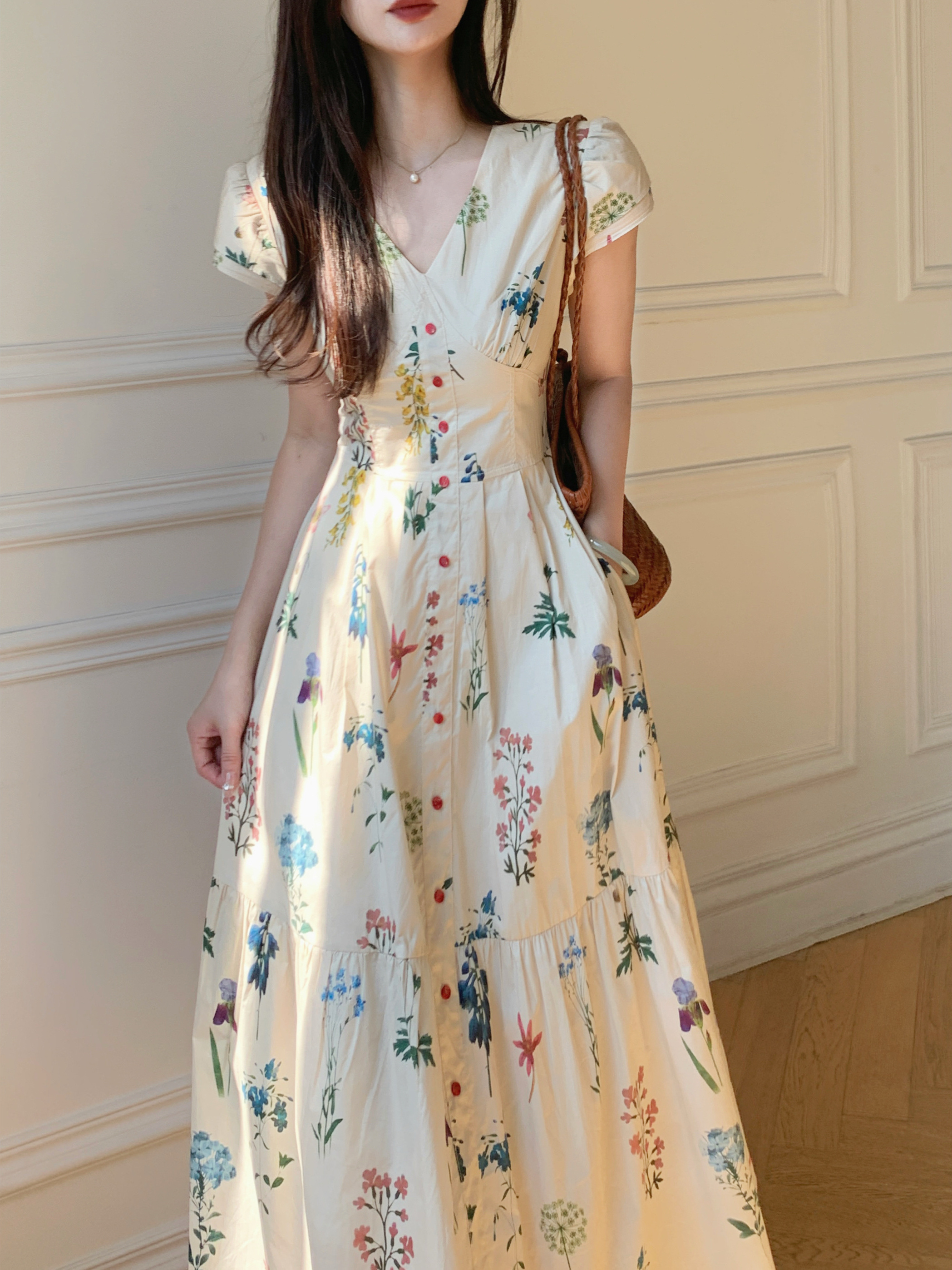 裁缝学苑AS549法式小飞袖V领收腰连衣裙纸样女装长款裙子样板