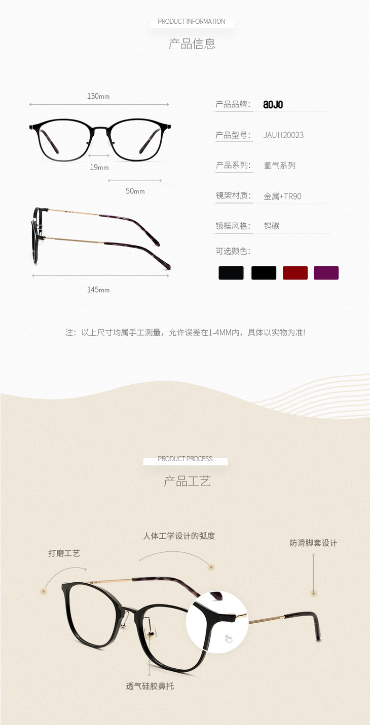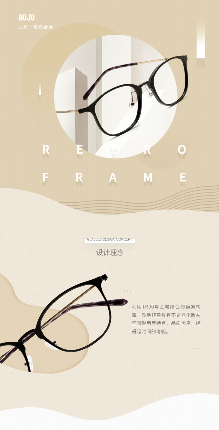 aojo 眼镜框经典系列复古圆框文艺镜架可配近视眼镜女 JAUH20023C02