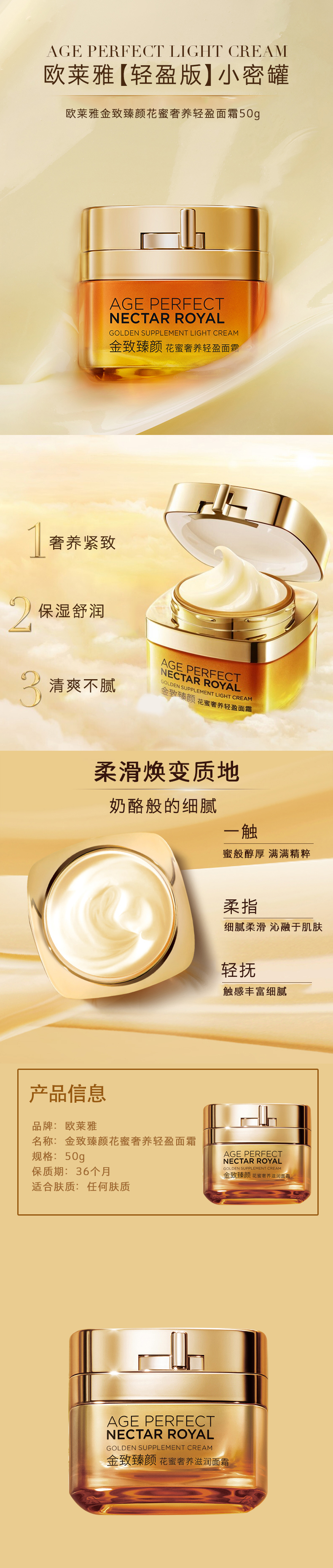 欧莱雅金致臻颜花蜜奢养轻盈面霜50g(30128637)【30128637】