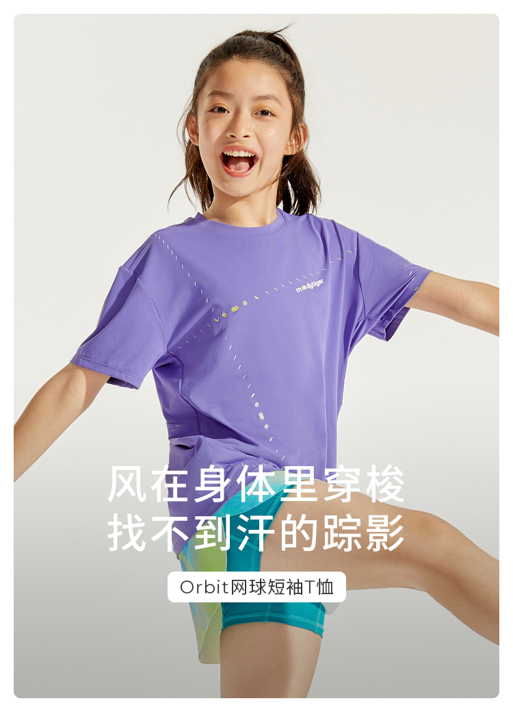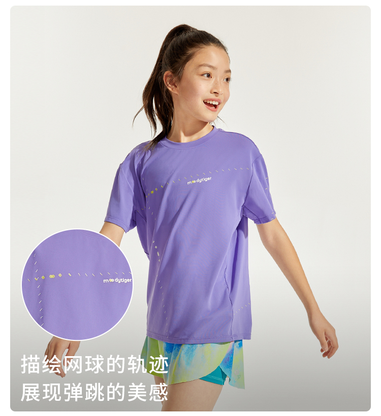【24年夏新品】网球系列moodytiger儿童速干短袖夏季新款宽松弹力运动T42510101