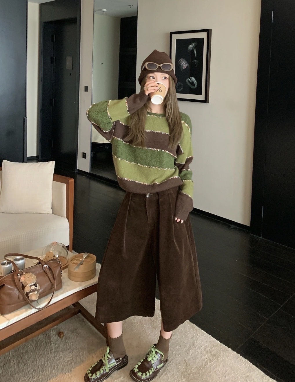 金棕色、藏青俩个高级色系,可以搭配你衣柜里的所以上衣‼️