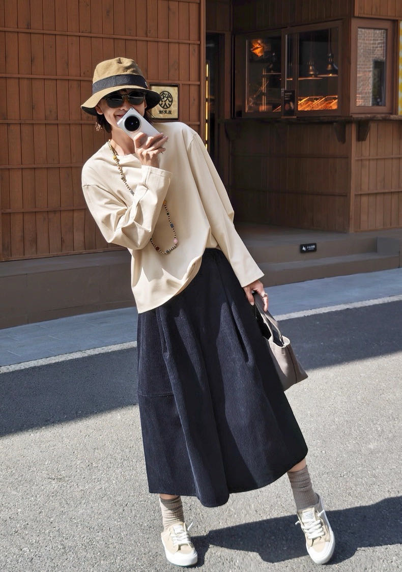 看上去是裙子,实际上是阔腿裙裤~