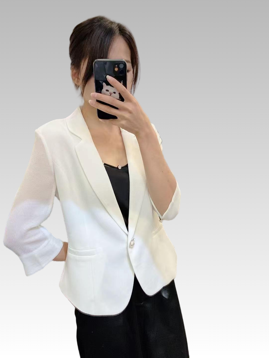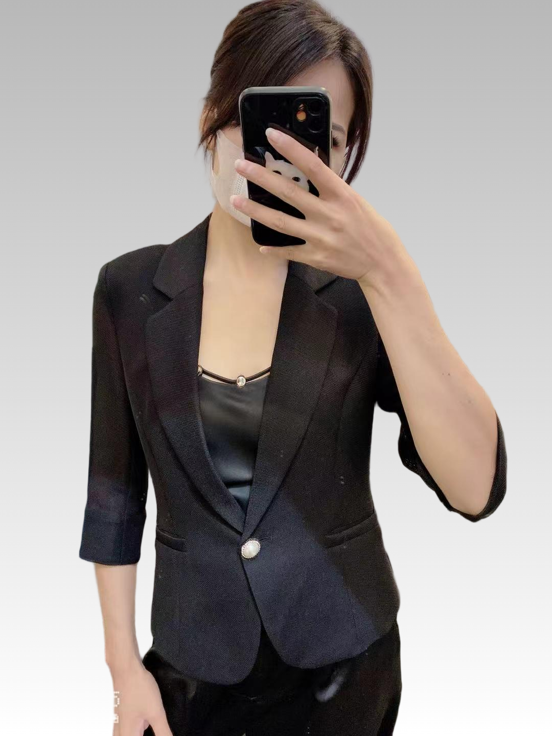 职场通勤半透中袖小西装SZ2A55-漆黑、皓