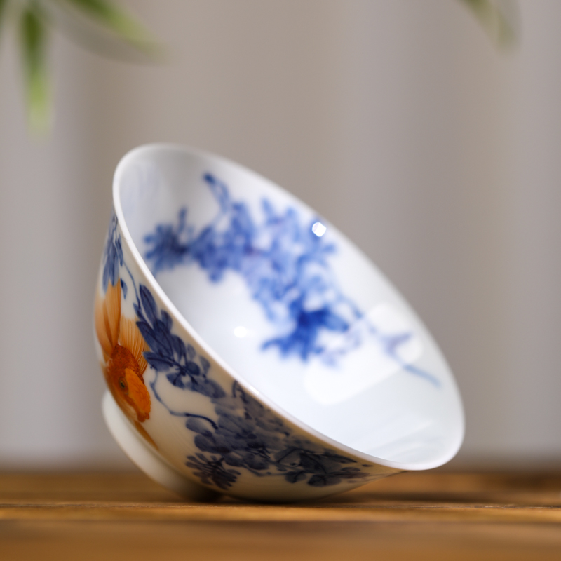 一儒堂青花加彩金鱼斗笠杯