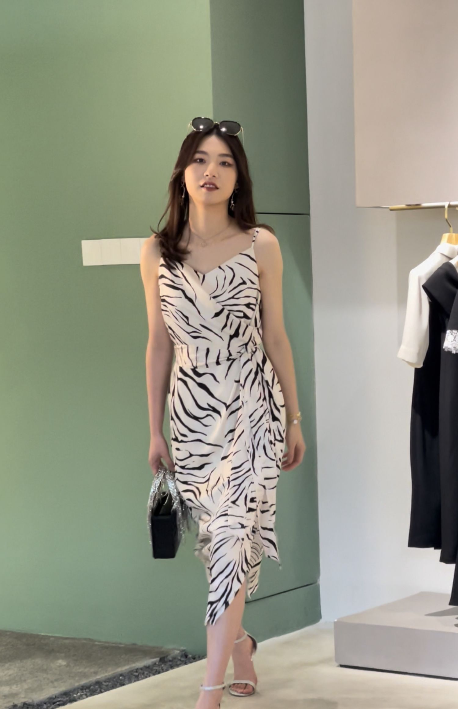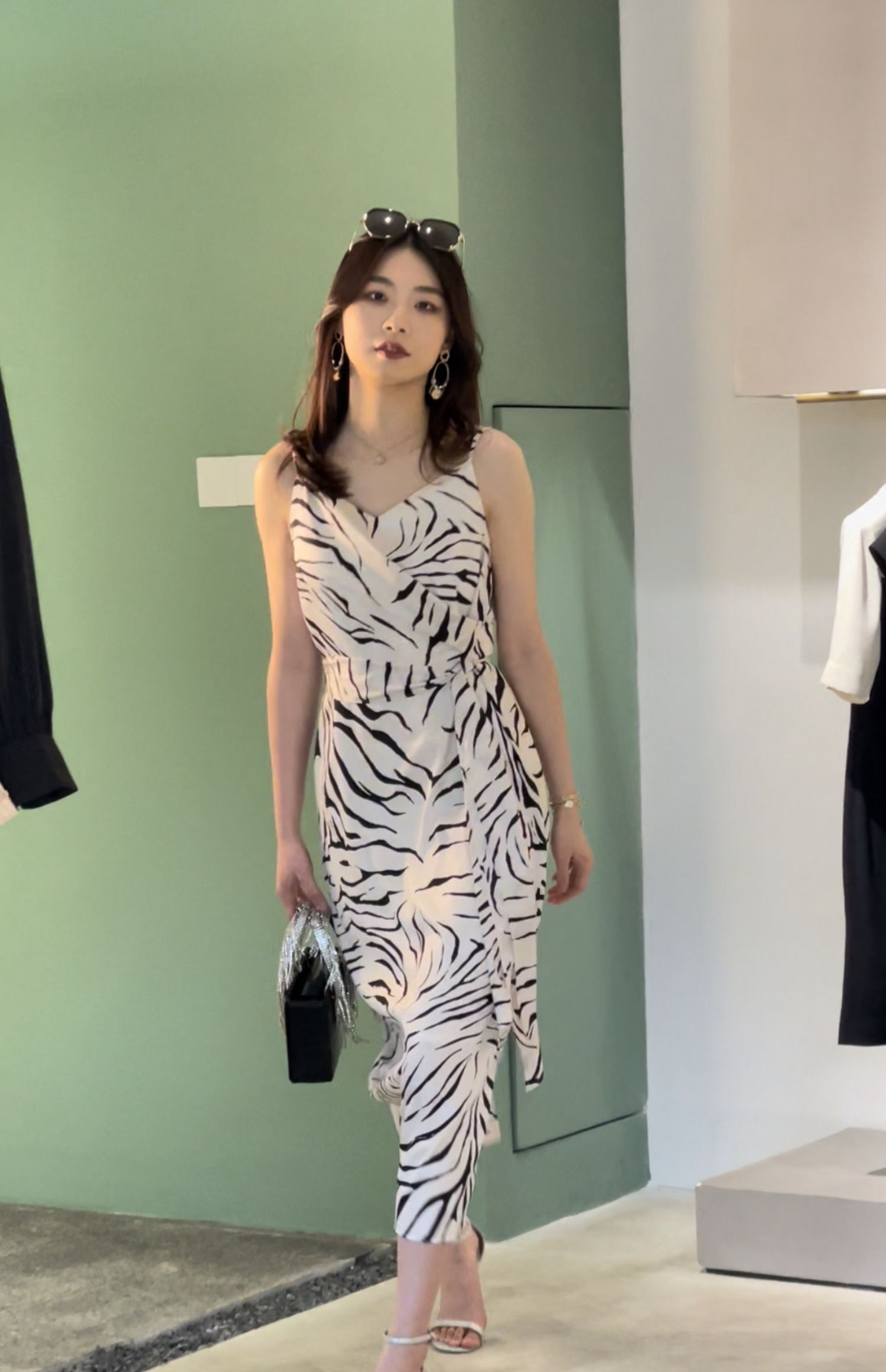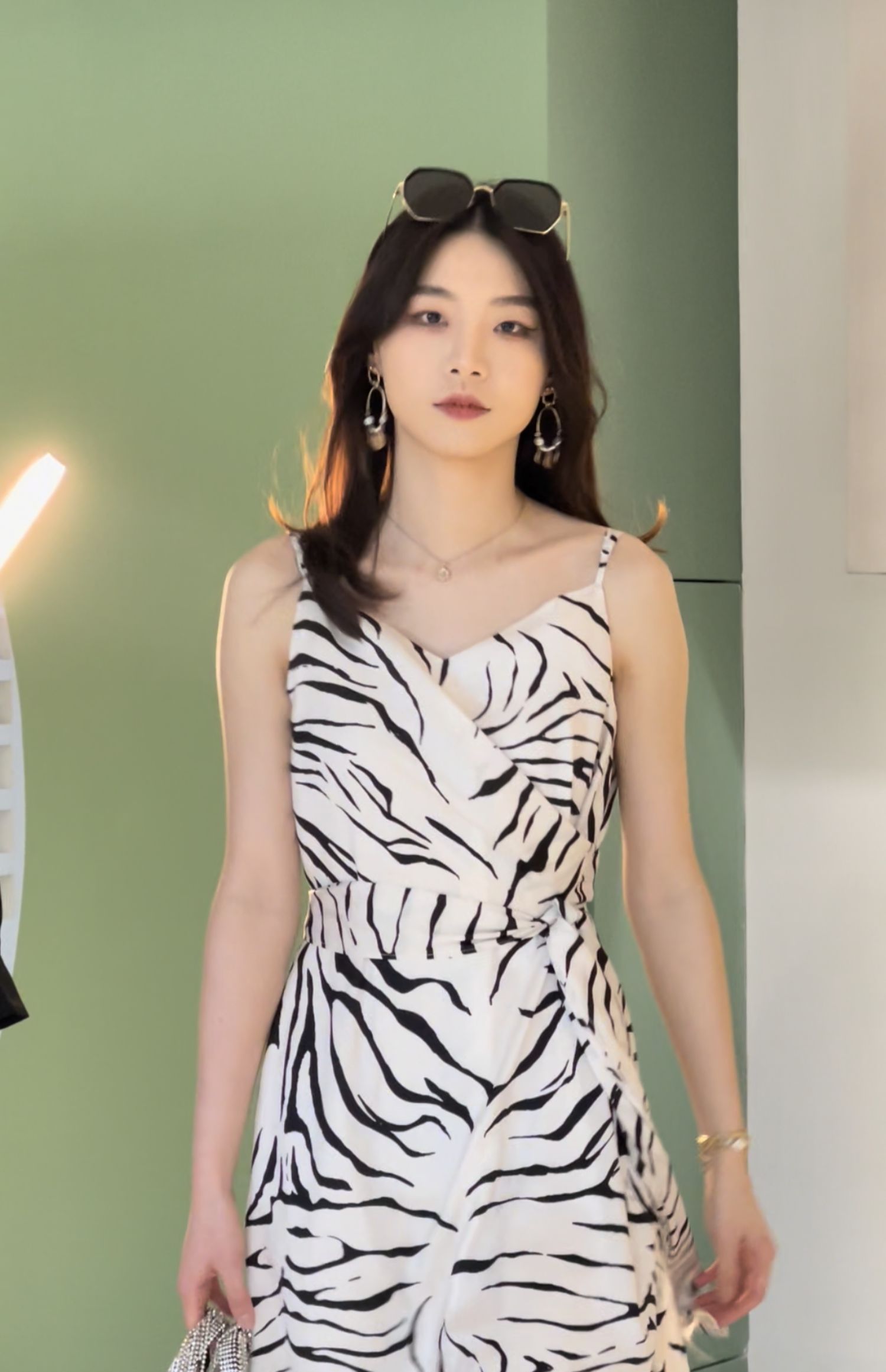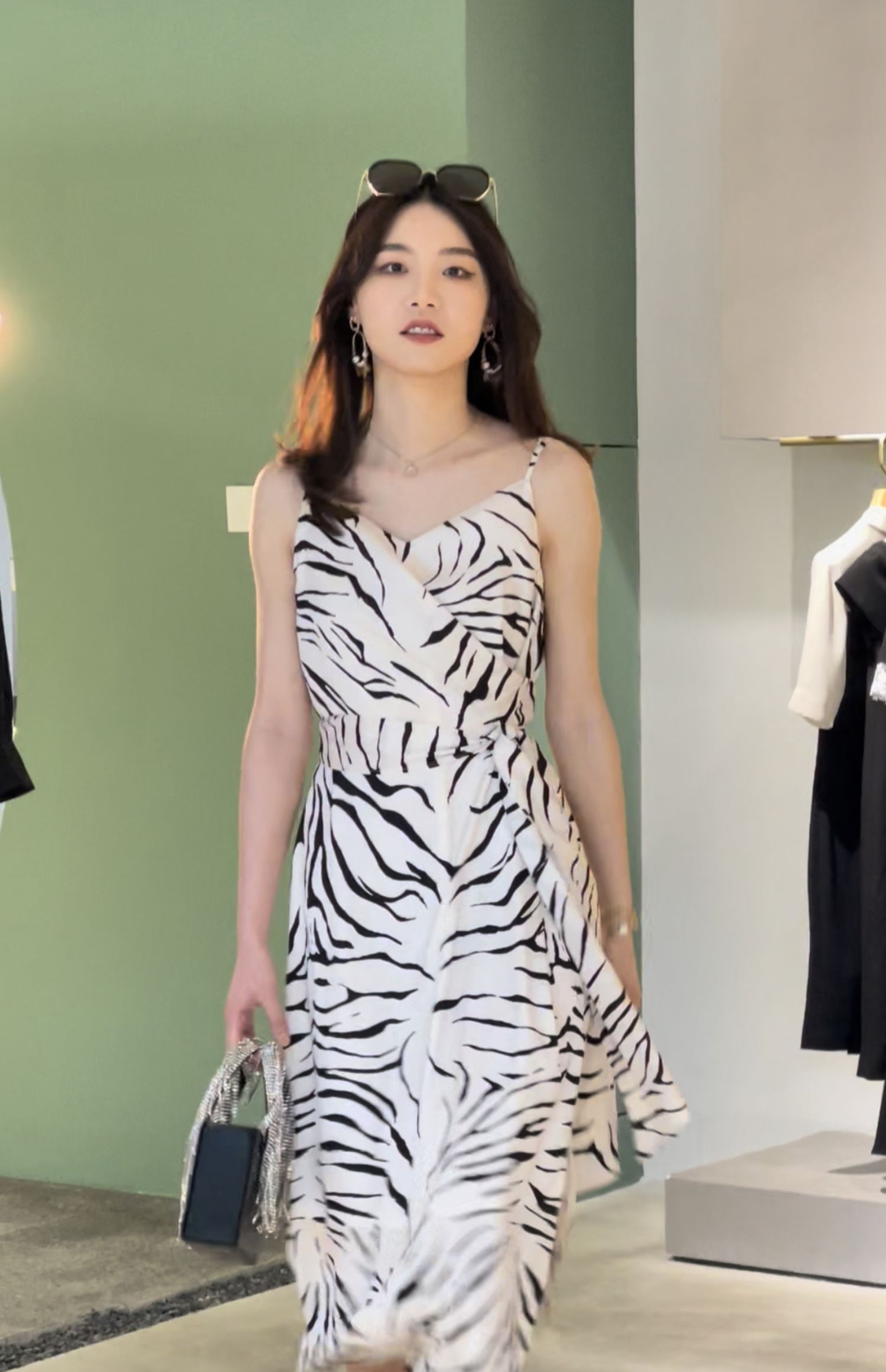 夏季斑马条纹吊带连衣裙女高级感裙子小众设计感显瘦吊带长裙性感