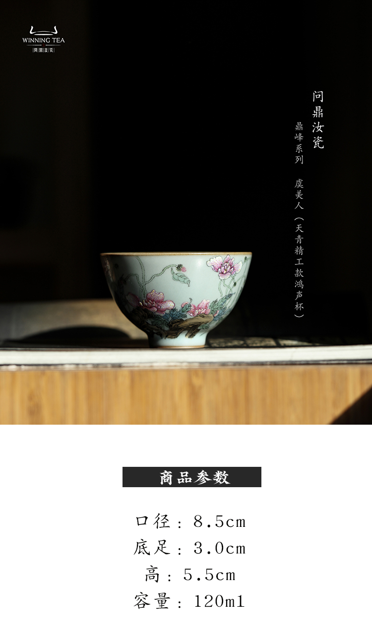 问鼎汝瓷鼎峰系列天青精工款鸿声杯(虞美人)