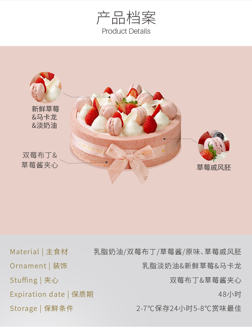 仟吉广西【马卡龙夏洛特】草莓戚风蛋糕(如需自提,请在买家留言处备注自提门店)