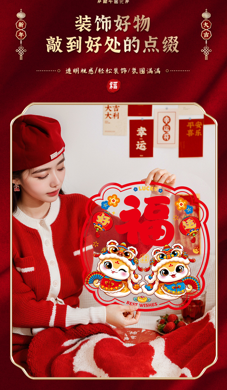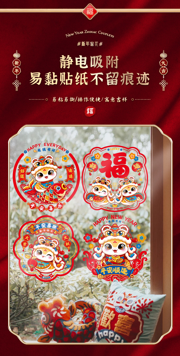 【氛围瞬间拉满❗️2025马年窗花组合】新年窗花,多种款式可选,把仪式感送给自己,新年装饰,春节过年贴纸,玻璃橱窗静电贴L直播引流品