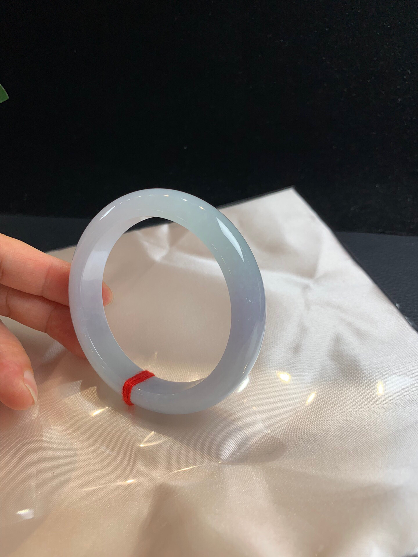 612705,55.5 淡紫罗兰手镯,12.5-8.2mm,整圈隐隐约约带些紫底,整条润润的,干净清新淡雅,超值价💰24100 #优石客珠宝#香玉荟萃