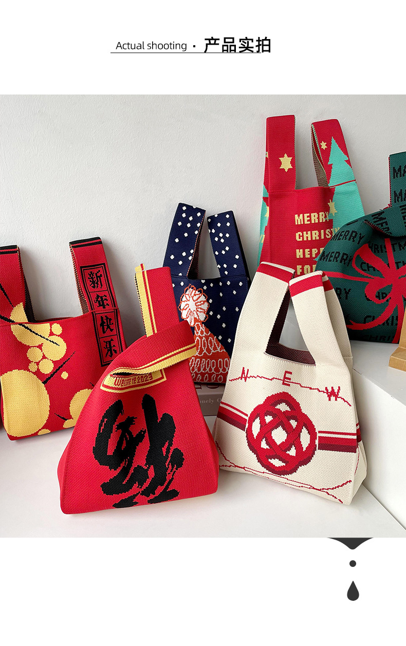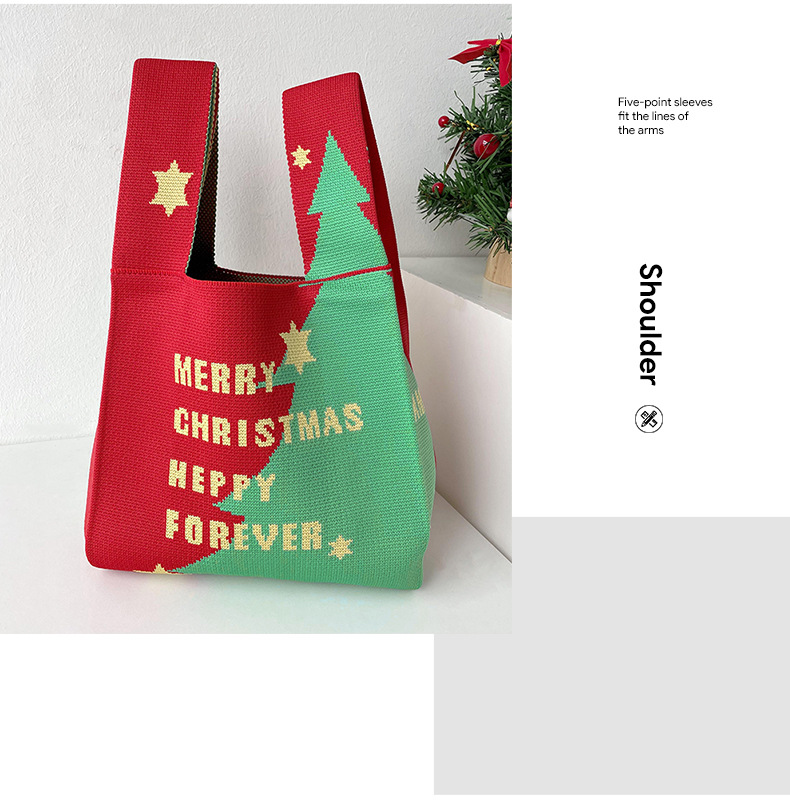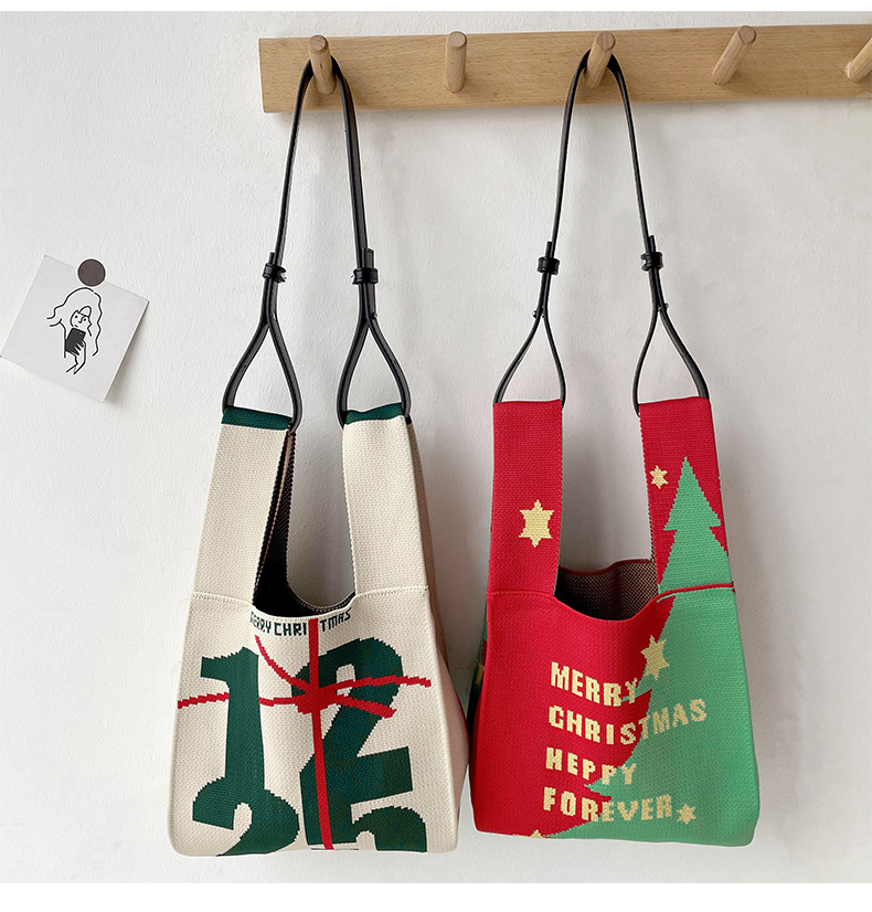 【可盐可甜❗️圣诞针织包包】圣诞新年礼物 针织包包女 韩版百搭 出街红色手提包腋下包托特包女包三八妇女节新年礼盒年货礼盒