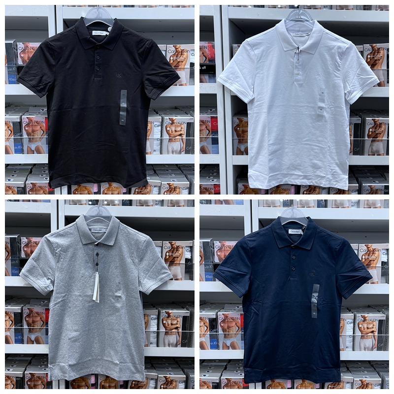 Calvin Klein/CK 男士夏季新款纯色翻领棉混纺透气短袖POLO衫