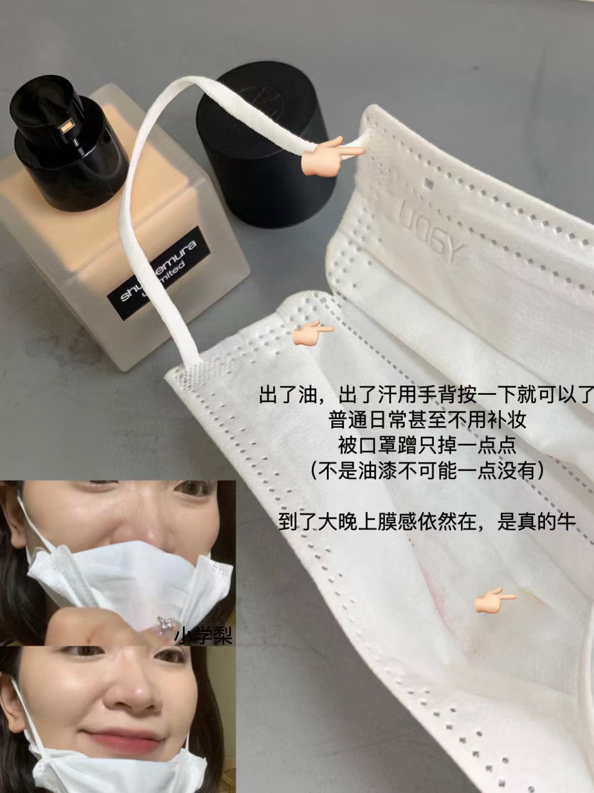 植村秀小方瓶粉底液,是油皮真爱!它zui加分的点是很持妆!加了抗氧化的大米精粹,做好定妆,日常持妆持色一整天没啥问题,皮肤微出油的之后底妆更服贴,扒牢在皮肤上,不易斑驳脱妆,油皮混油皮持妆yyds!!