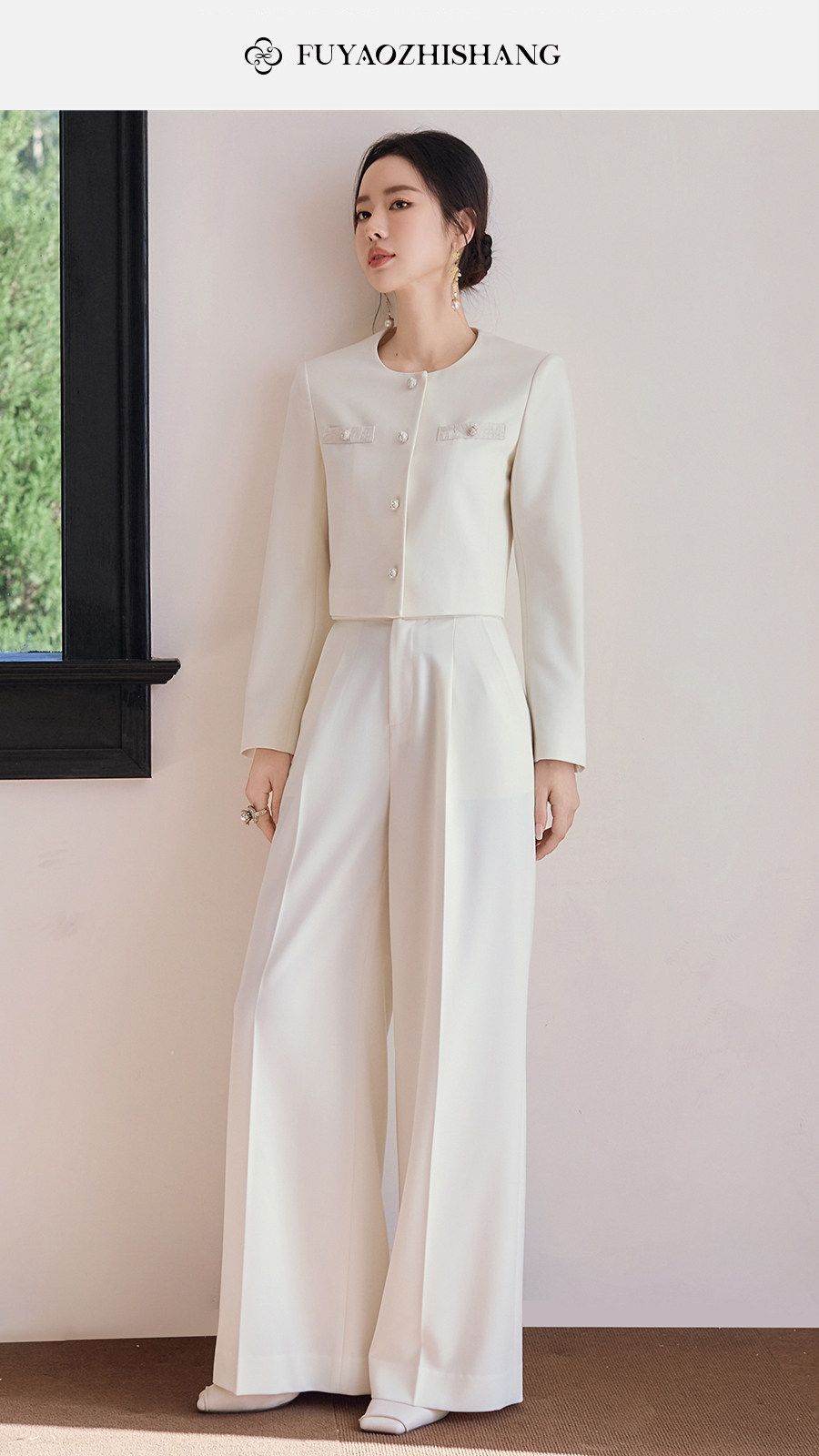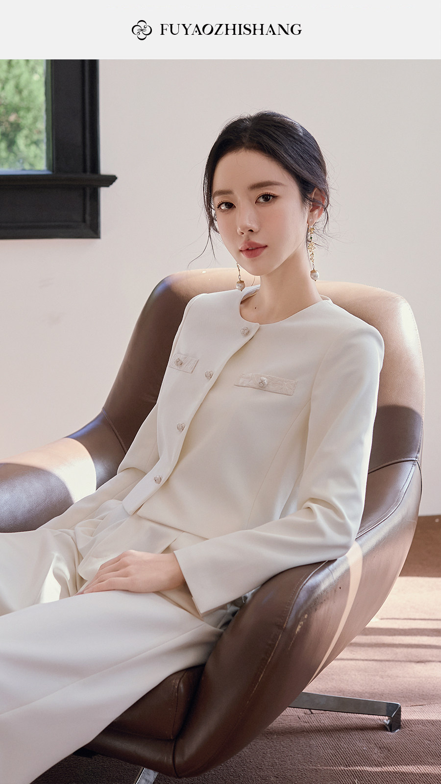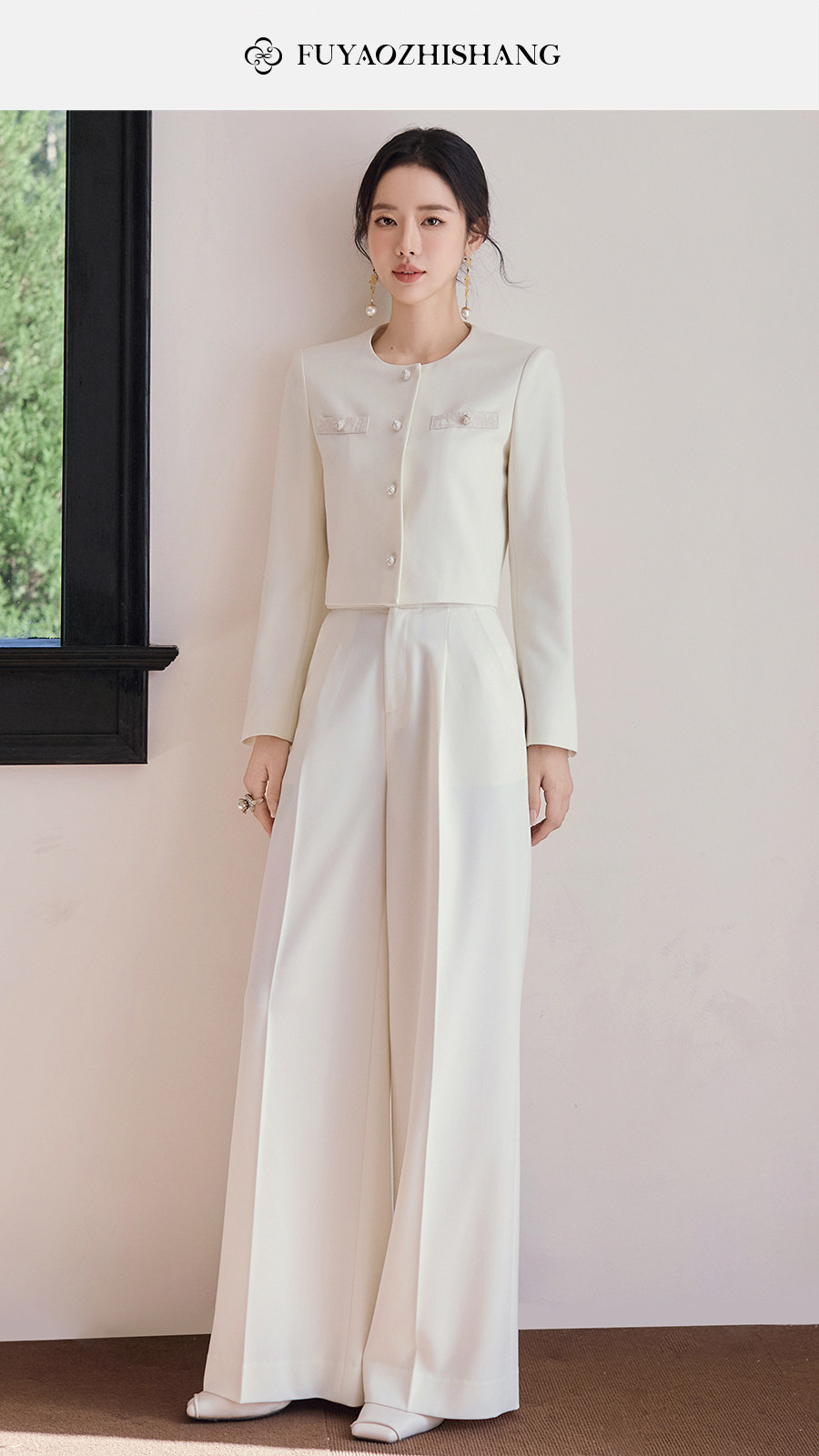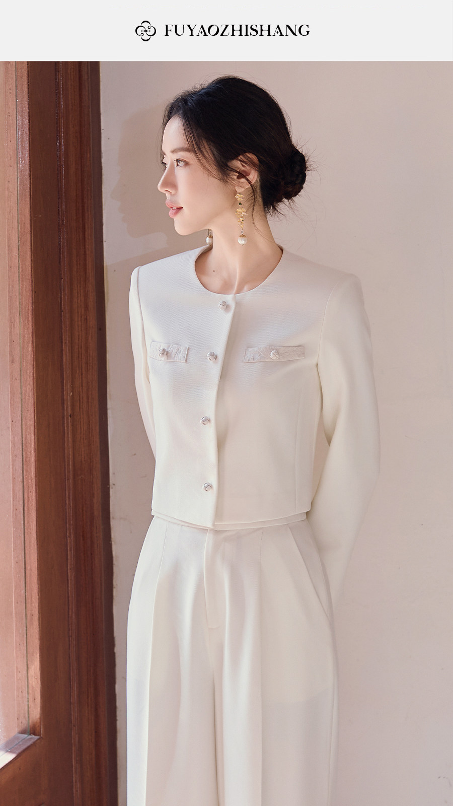 FUYAO扶摇直上 轻熟优雅风白色盘扣时尚套装女职业装两件套短外套