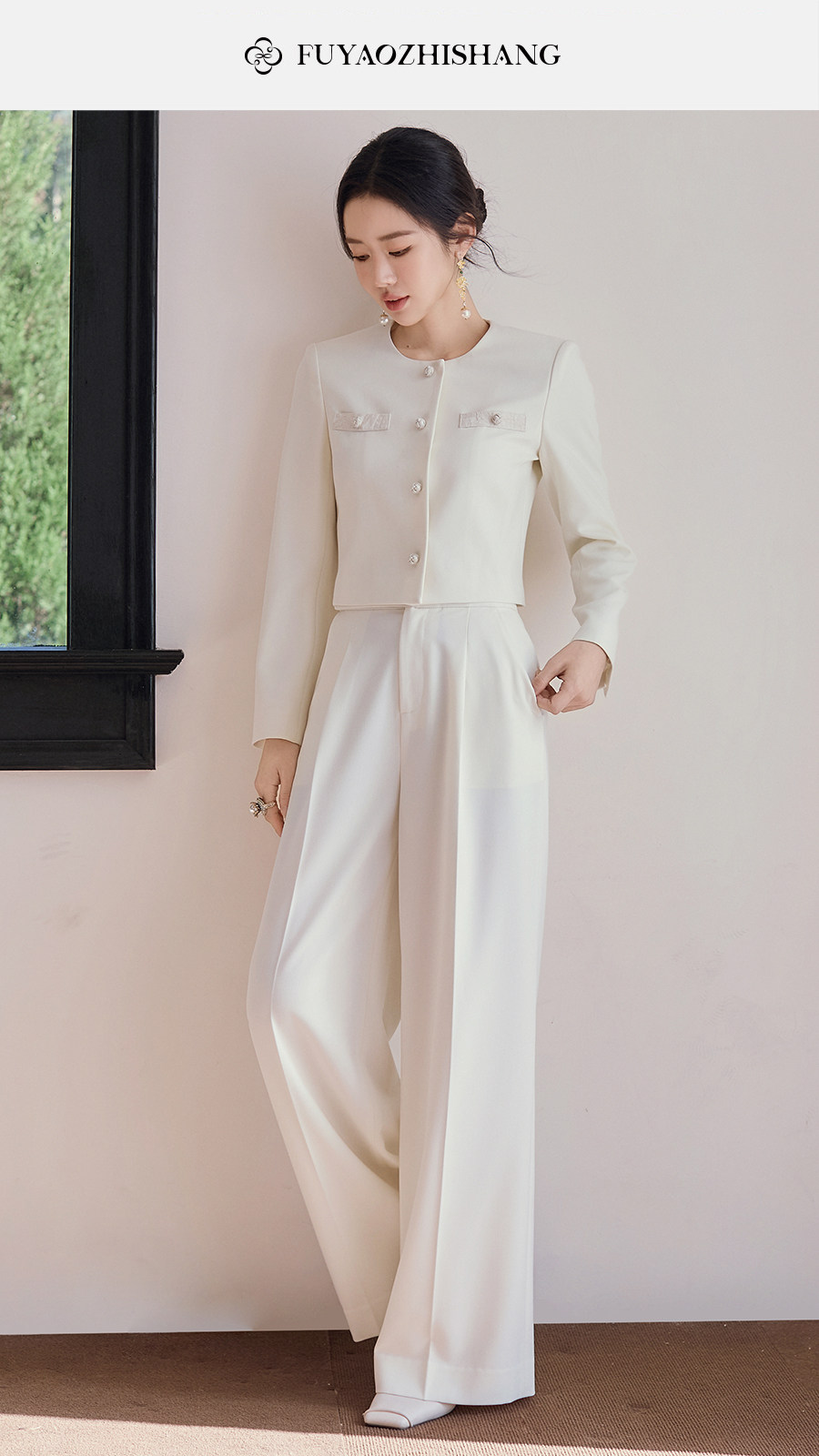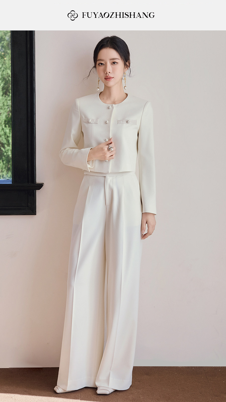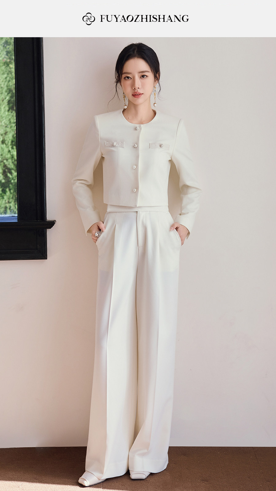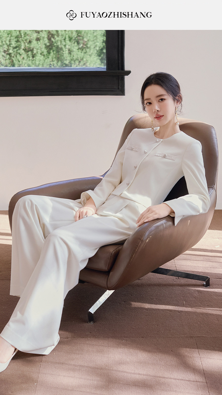 FUYAO扶摇直上 轻熟优雅风白色盘扣时尚套装女职业装两件套短外套