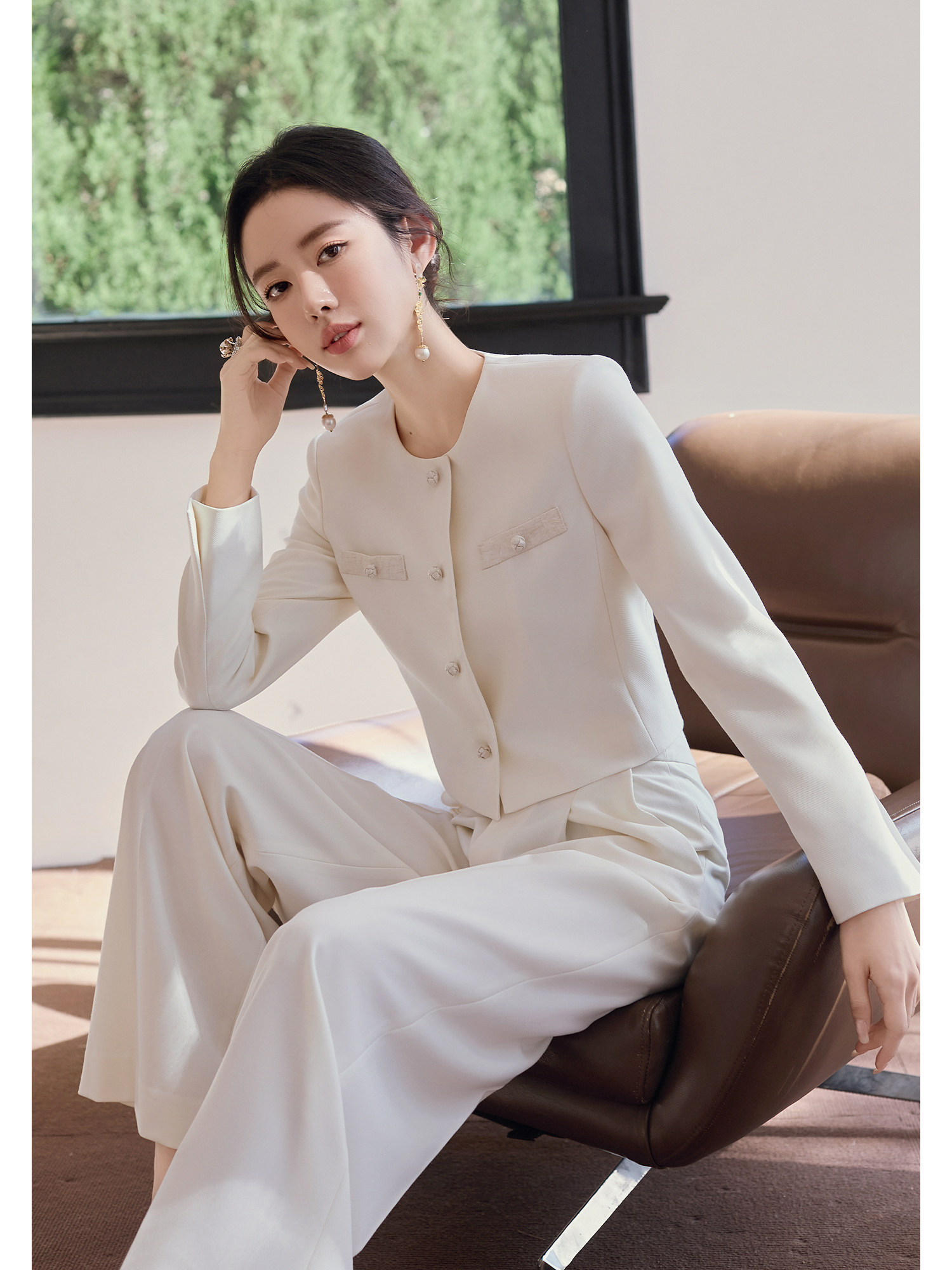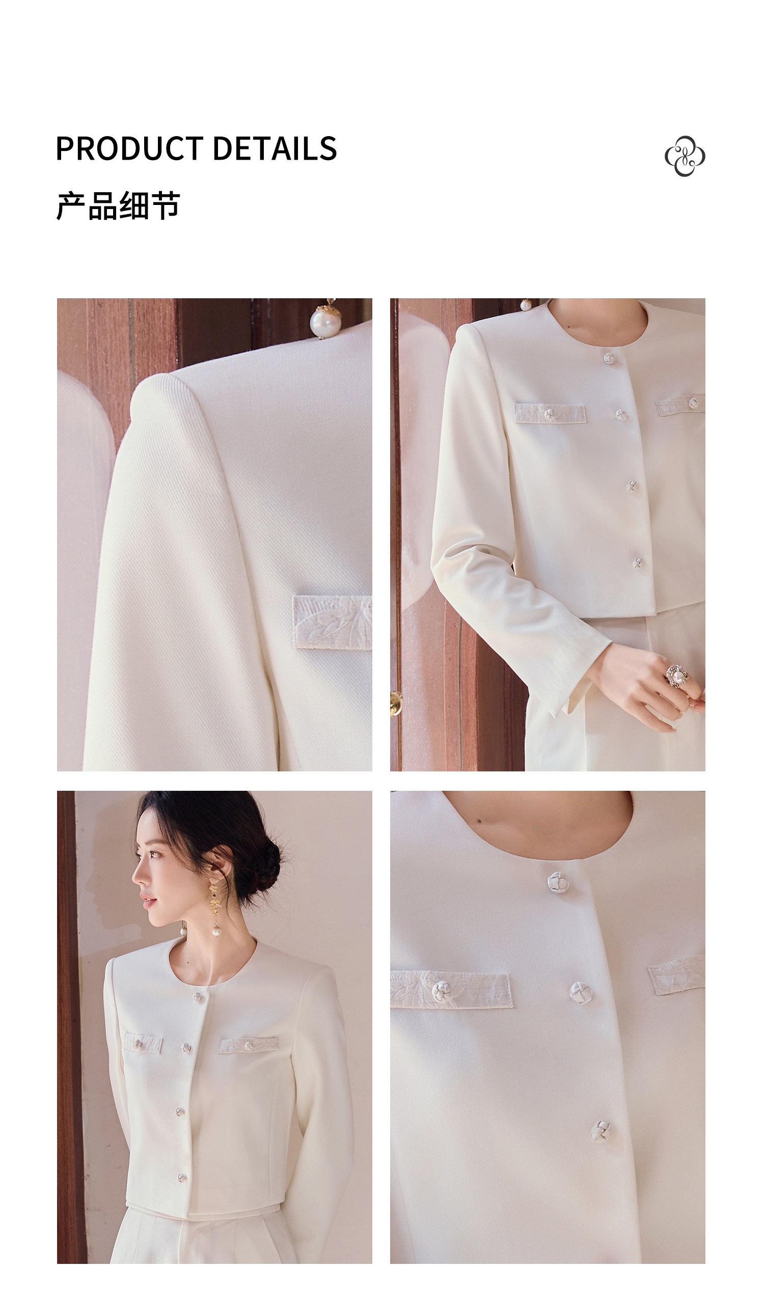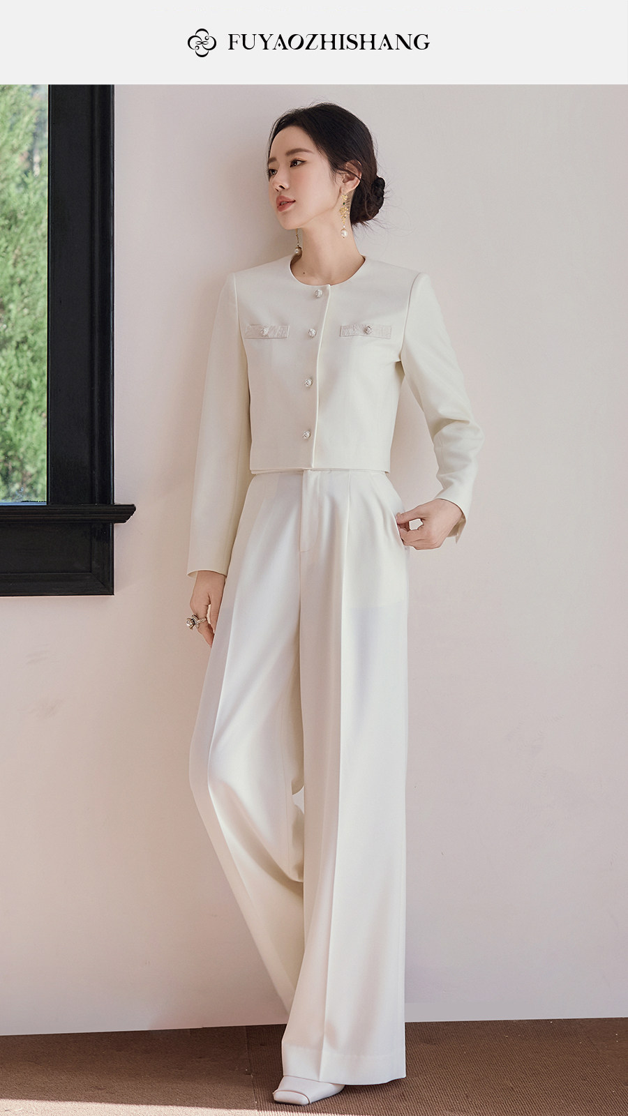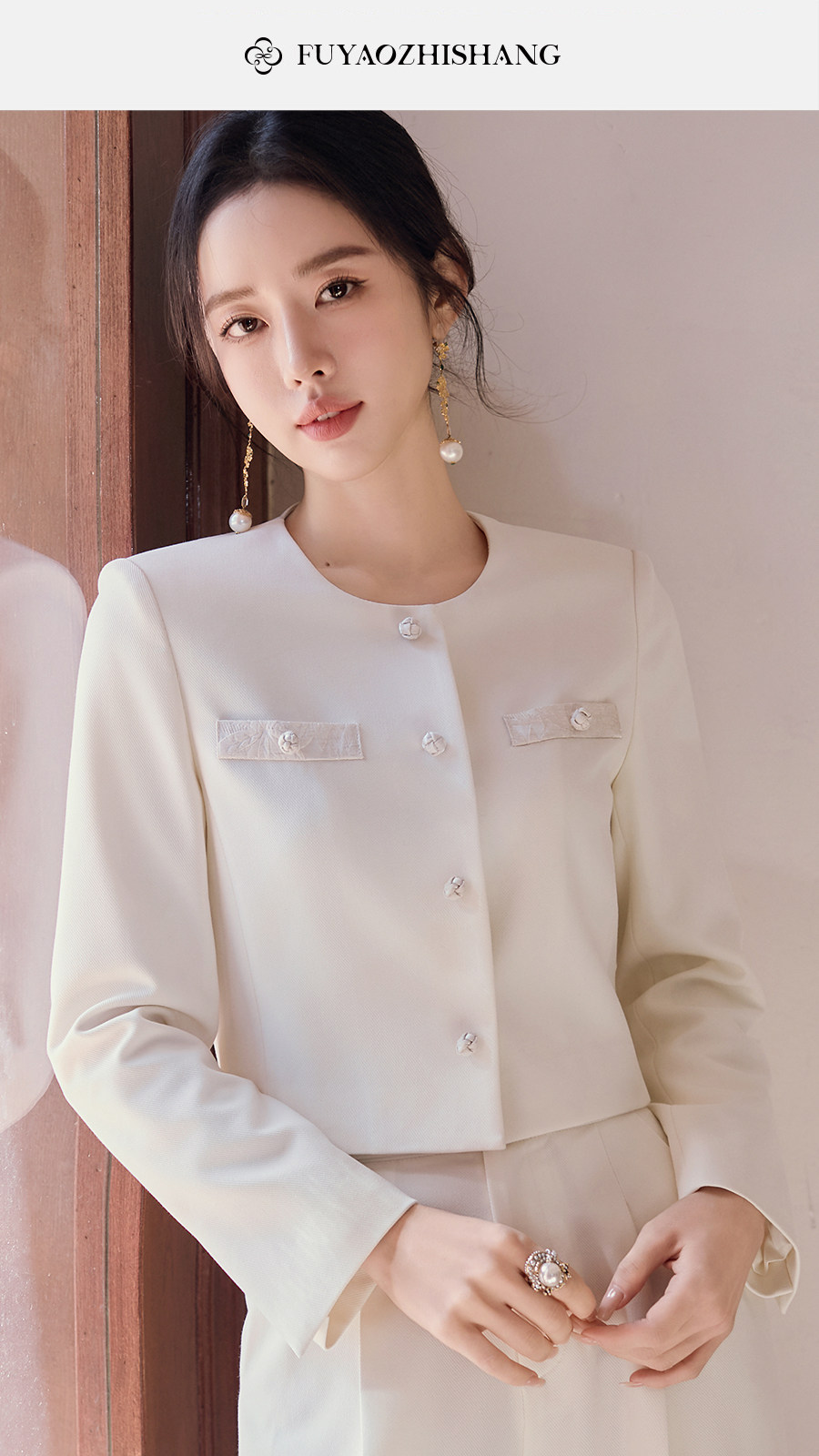 FUYAO扶摇直上 轻熟优雅风白色盘扣时尚套装女职业装两件套短外套