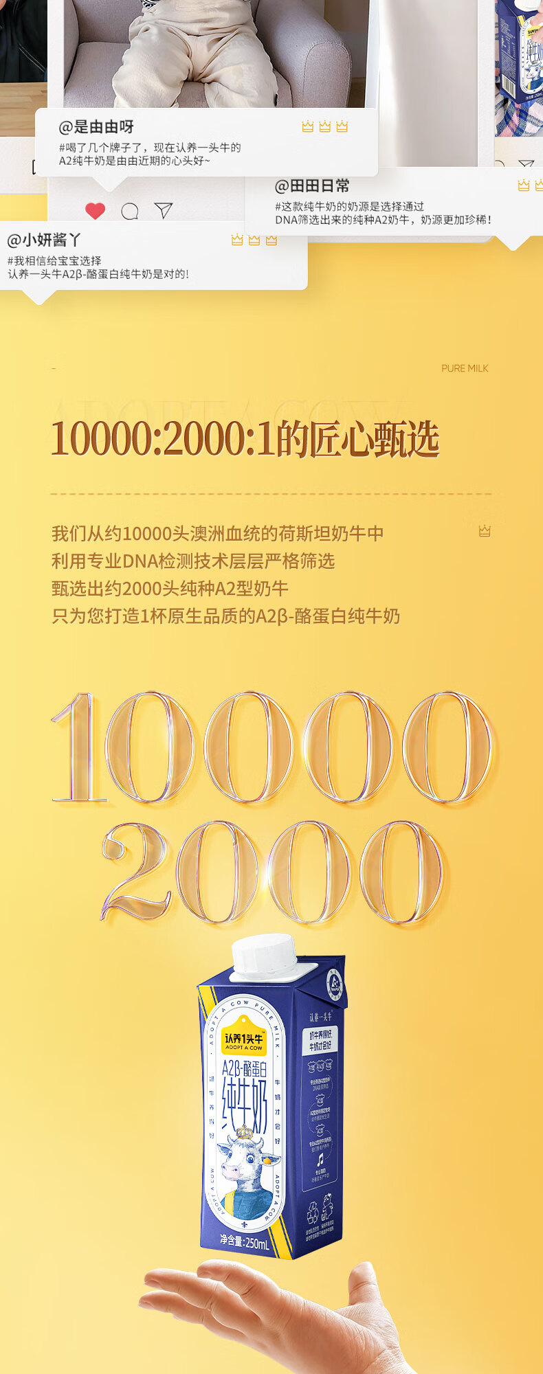 认养一头牛A2β纯牛奶(梦幻盖)250ml*10