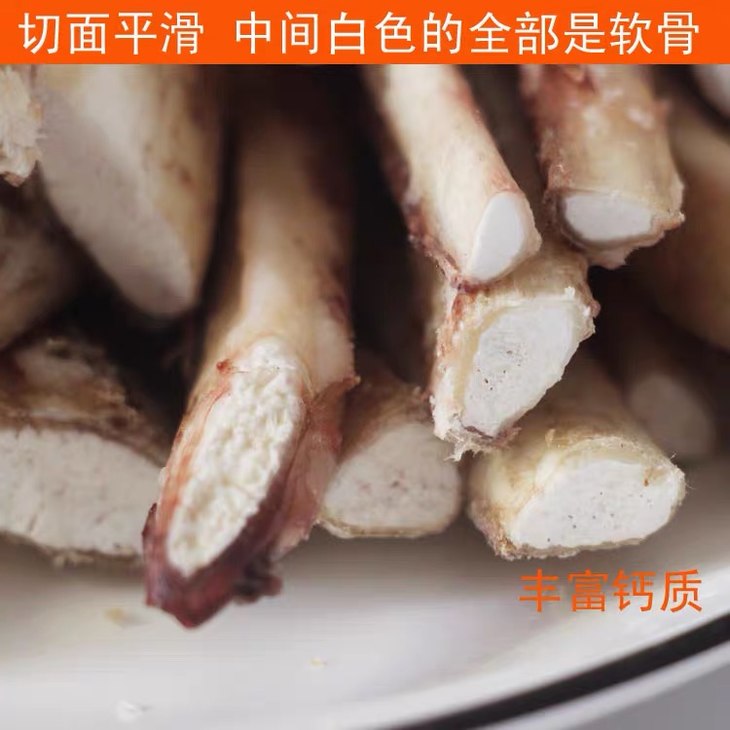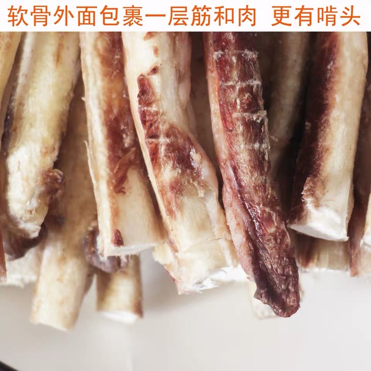 软骨外包裹一层筋和肉,具有咬头喔,更富含铁,锌,镁等丰富的营养素,补钙的同时还可以祛除牙垢喔