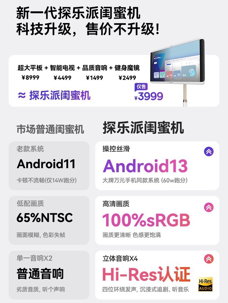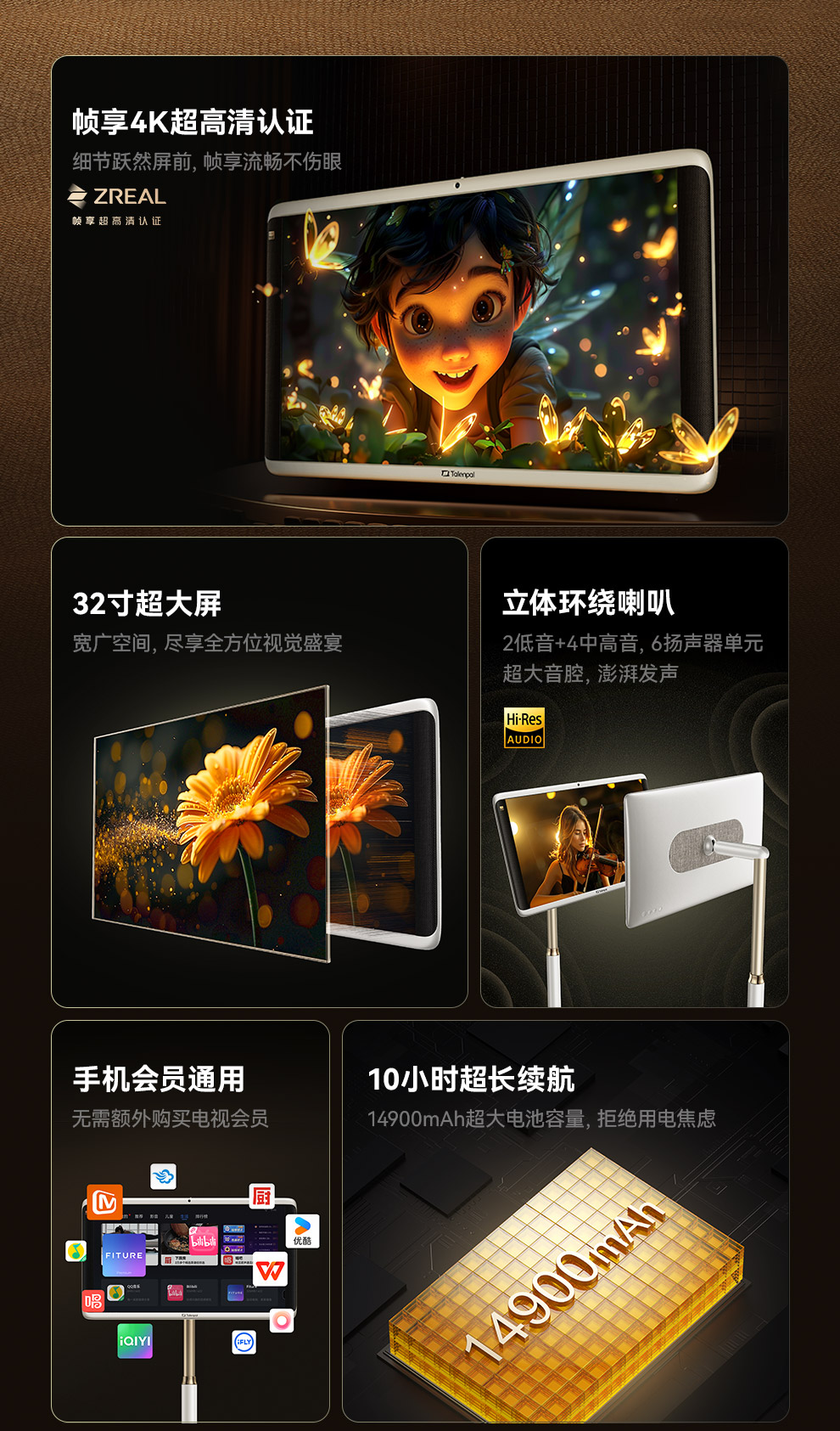 【顺丰包邮】探乐派闺蜜机32寸 4K 可移动长续航AI智慧屏 触控一体机观影 / 健身/K歌/学习(送麦克风2个)