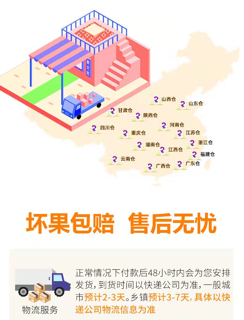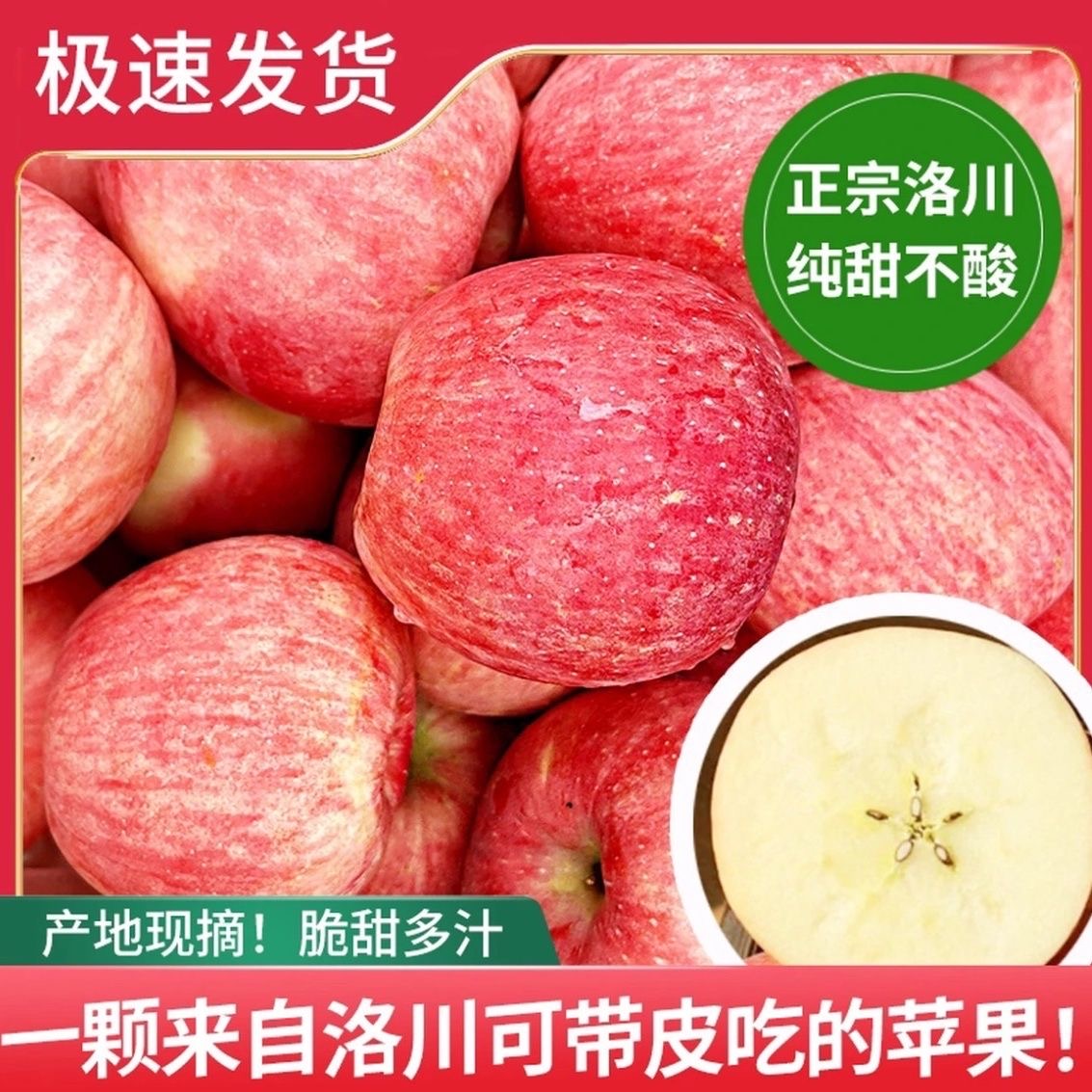 品名: 洛川苹果 规格1:4.5斤 注:净重4.5斤,宝宝果,70-80mm 包装:纸箱+网套 快递:邮政 发货时效:48h 发货地/产地:陕西蒲城/陕西洛川 运费模板:新疆西藏海南内蒙不发货;其他地区包邮。 售卖期:4-7月 保质期:7天左右 周六周天、节假日除外,早上十点之前的订单是48小时发货 ,到货时间约为2-5天,请您耐心等待 |