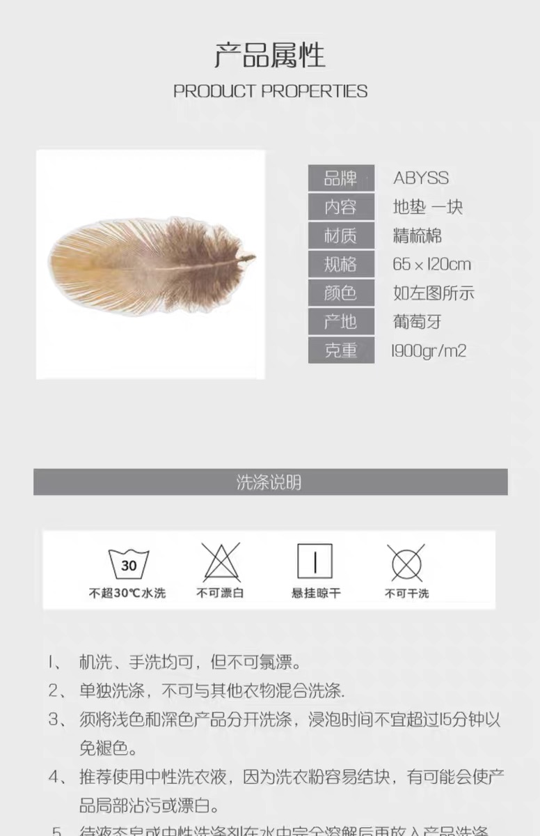 【6F】葡萄牙Abyss爱比丝灰色地毯进口纯棉地垫脚踏垫65*120cm A840