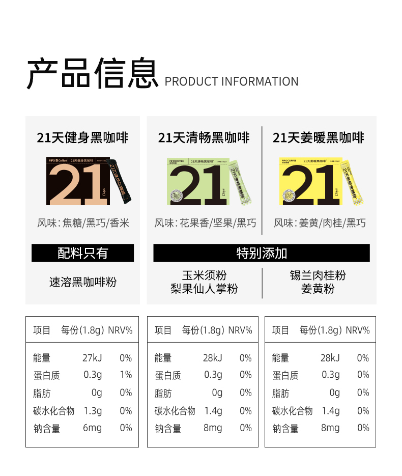 【享咖啡贴纸】FIFO啡否 21天即溶黑咖啡 健身黑咖啡/姜暖黑咖啡/轻体黑咖啡