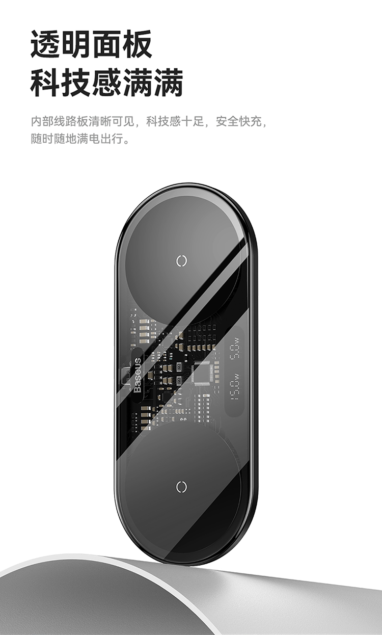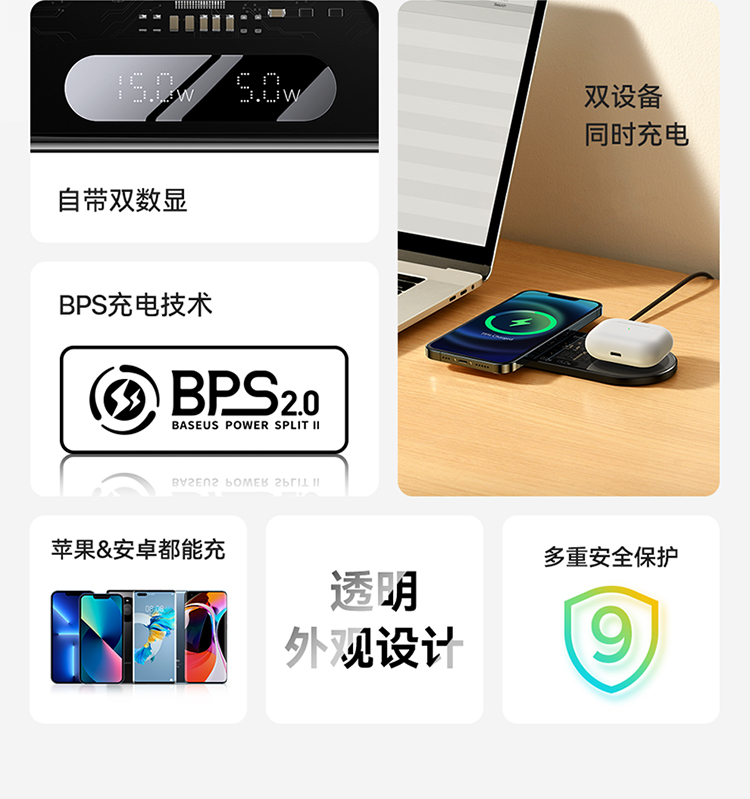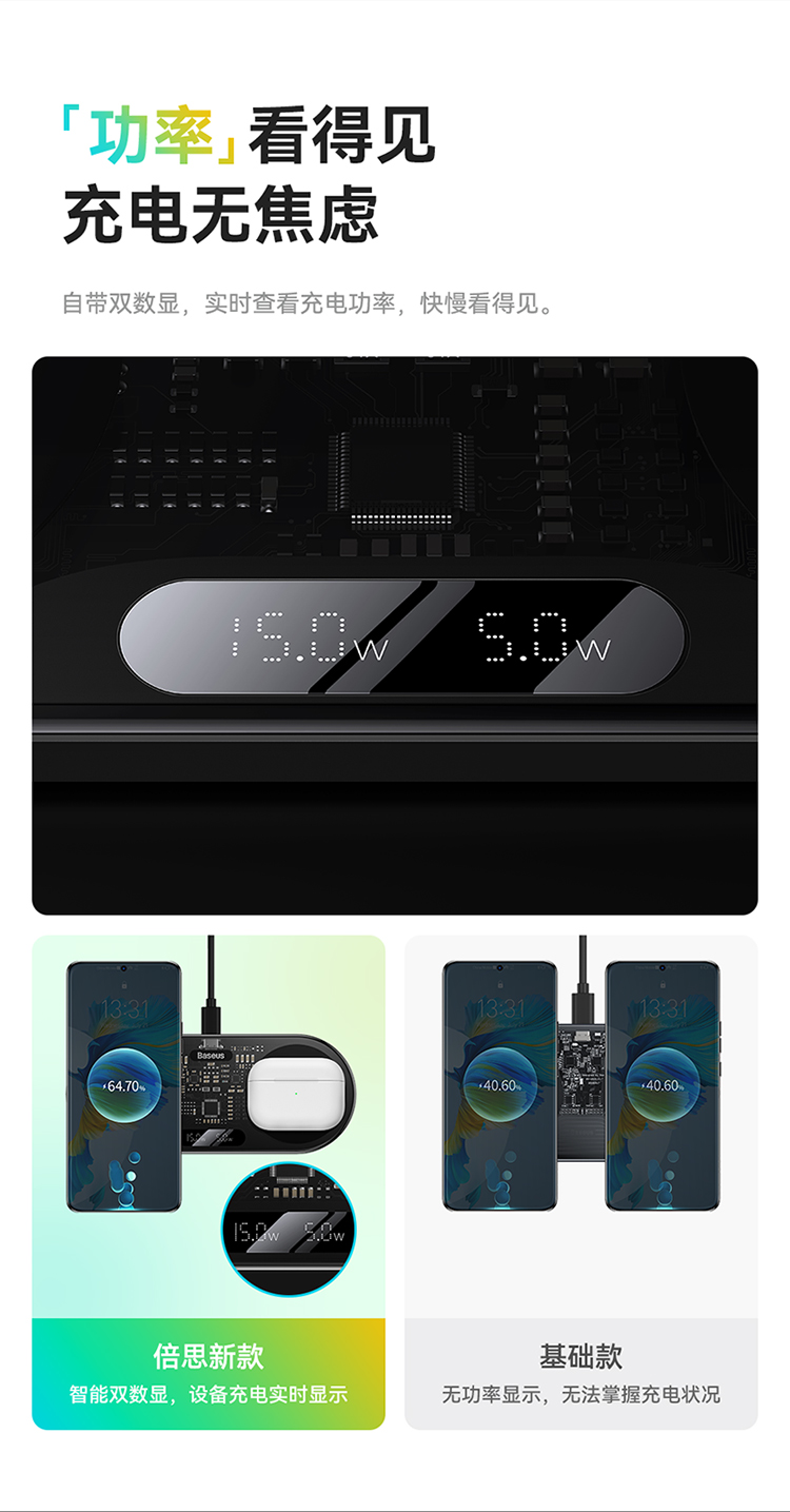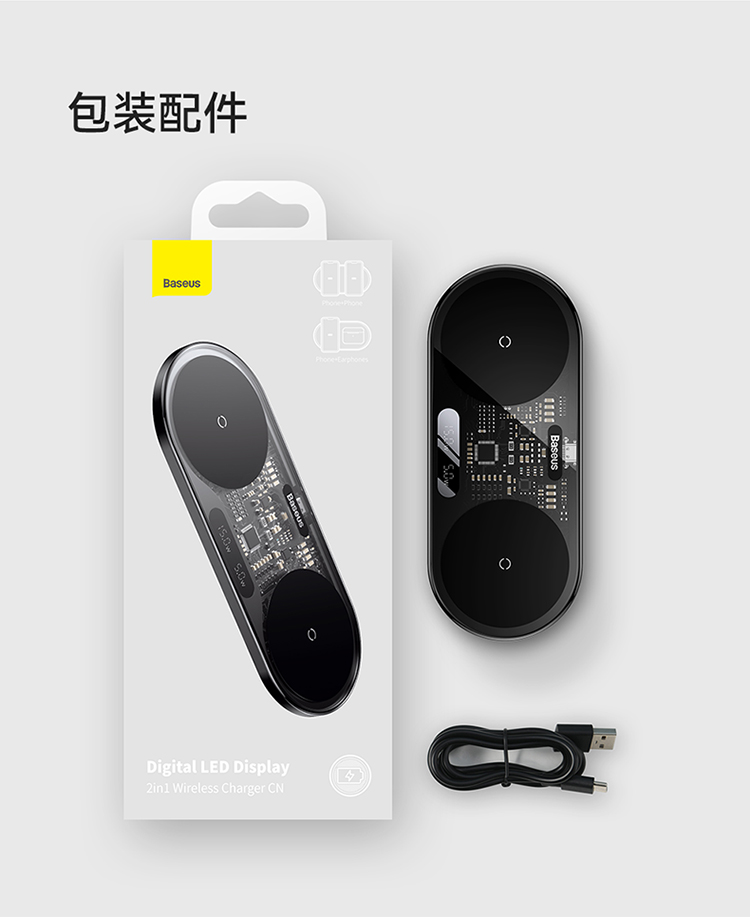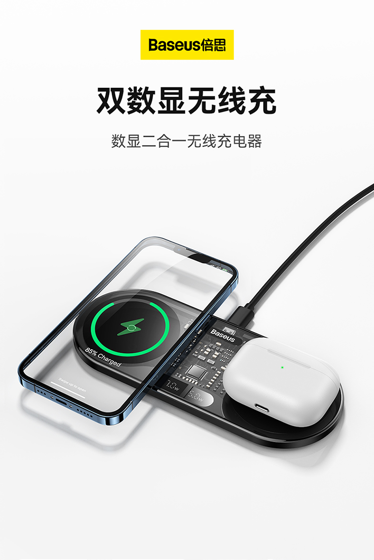 数显二合一无线充电器 20W 黑色 通用版