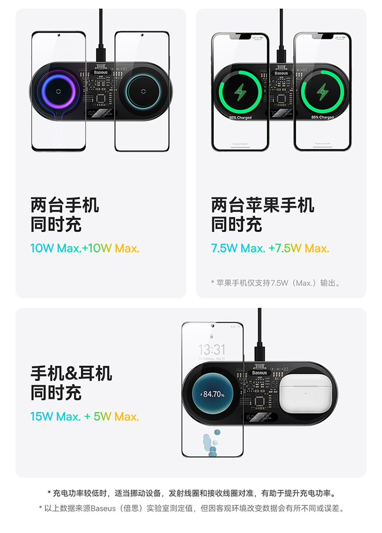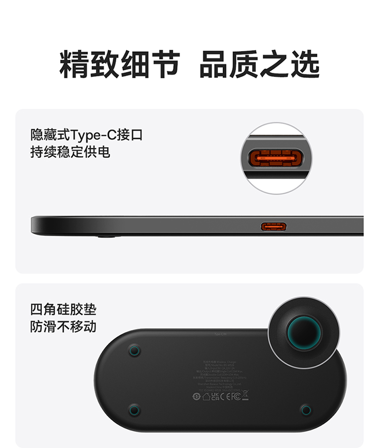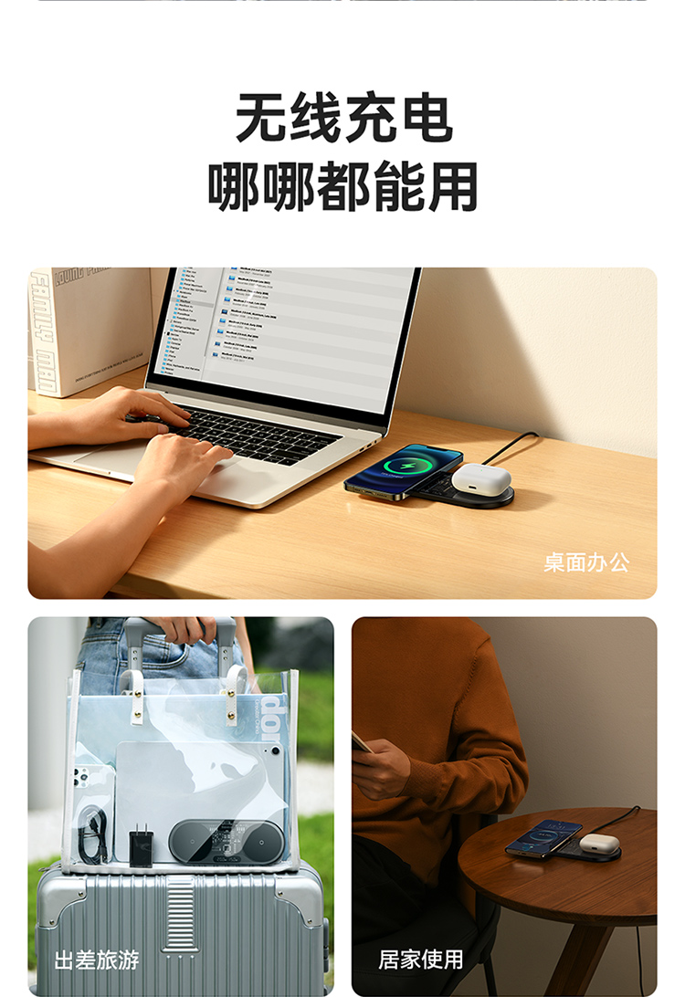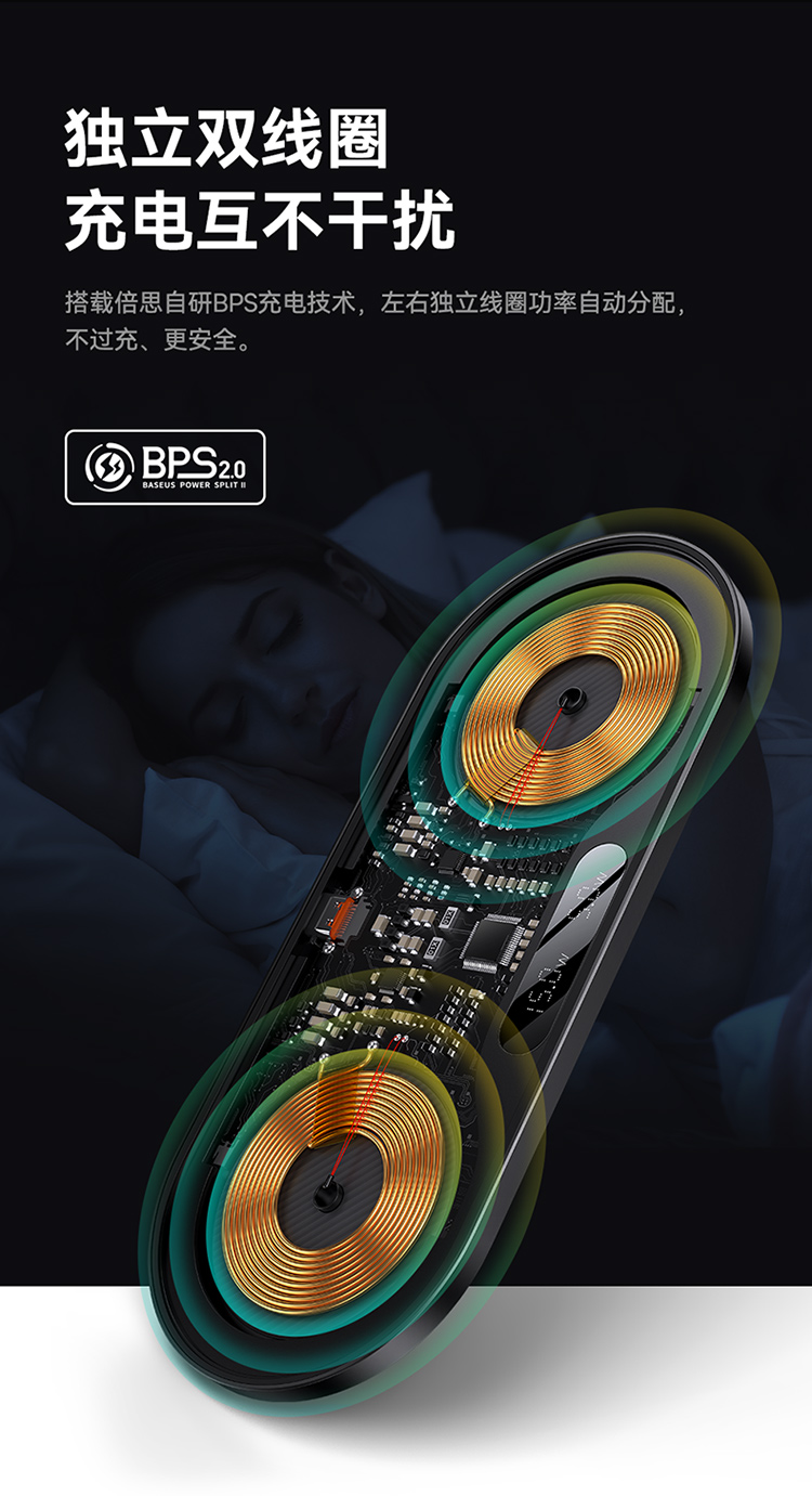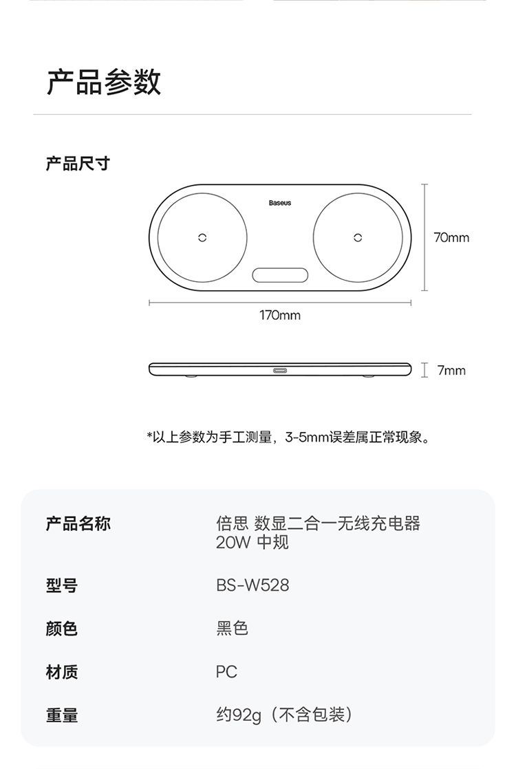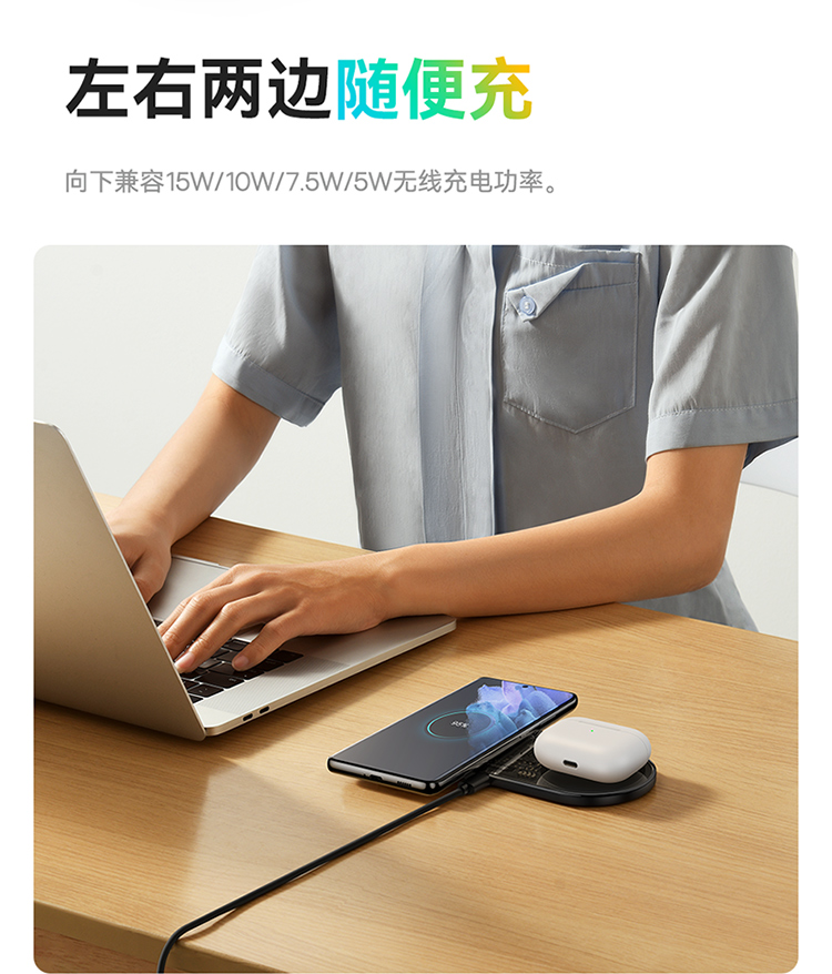 数显二合一无线充电器 20W 黑色 通用版