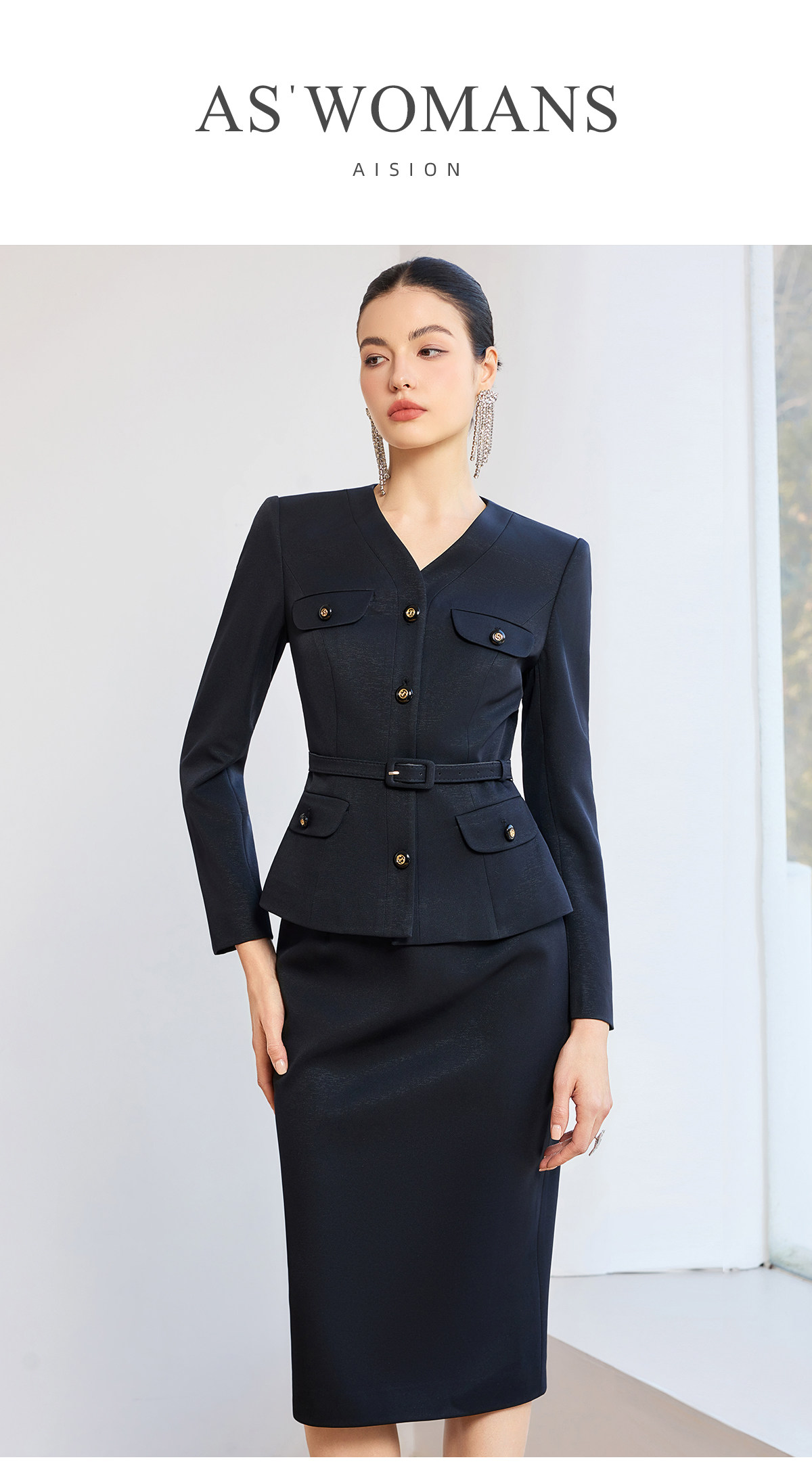 艾尚臣藏青色西装套装女2026新款春季职业装收腰显瘦轻熟风两件套