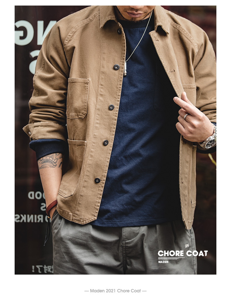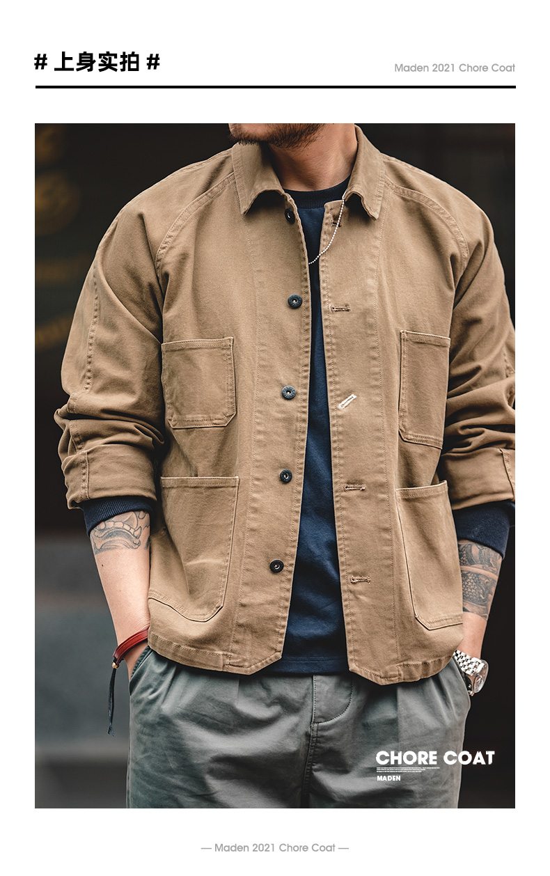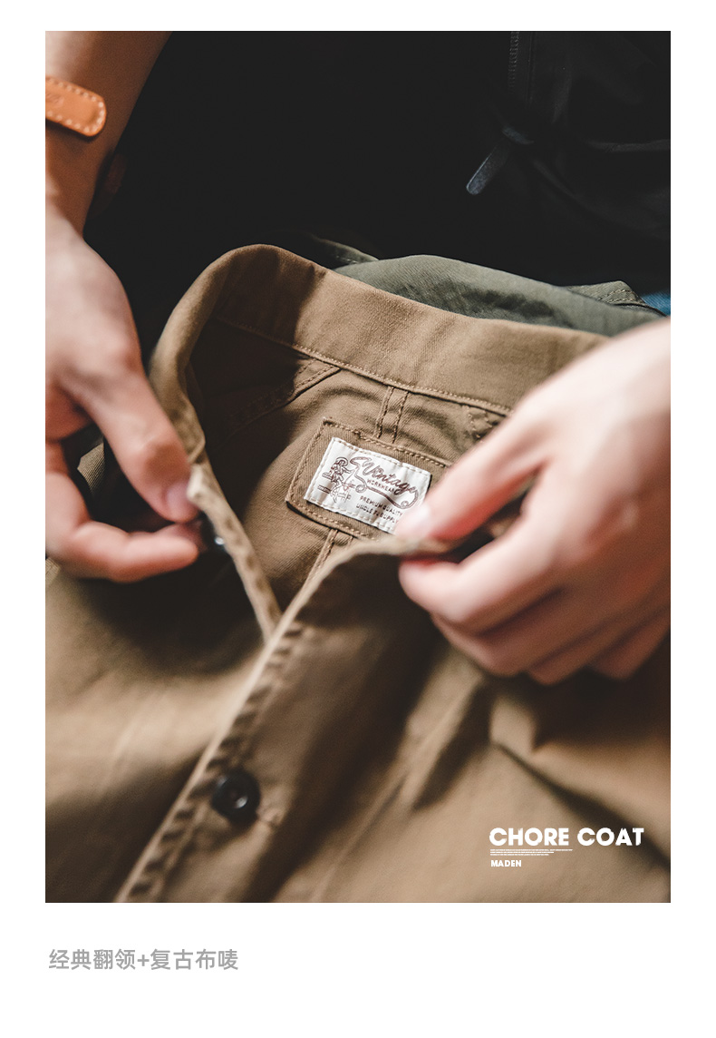 工装优选 美式复古巴黎扣四袋重磅夹克翻领阿美咔叽vintage外套