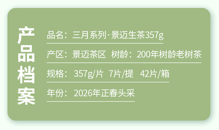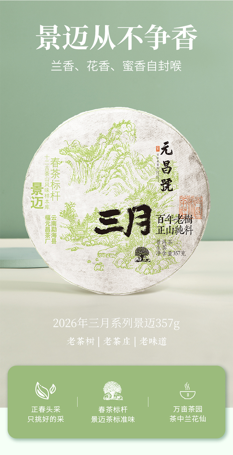 【元昌号】2026年三月系列头春大树景迈357g生饼