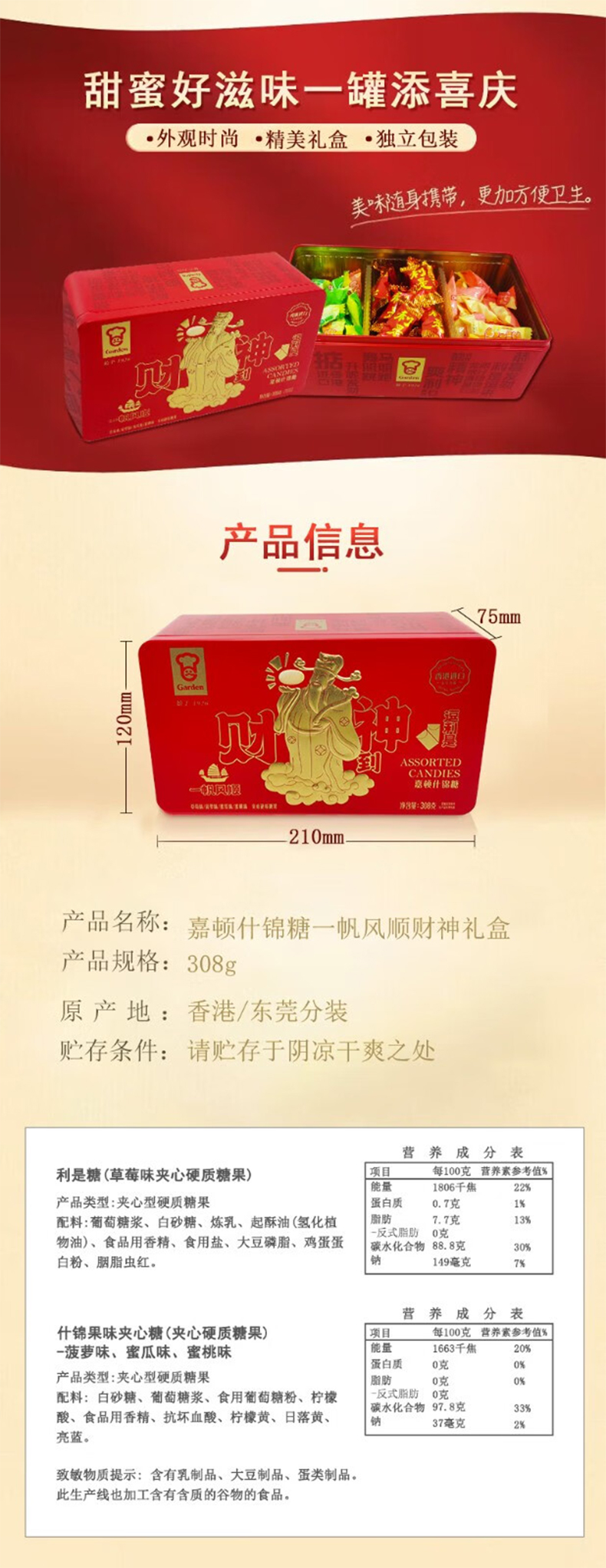 嘉顿一帆风顺财神礼盒什锦糖308g