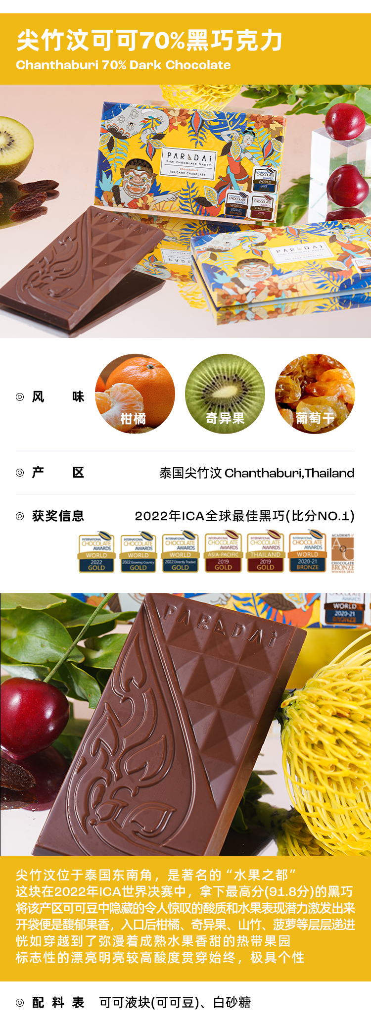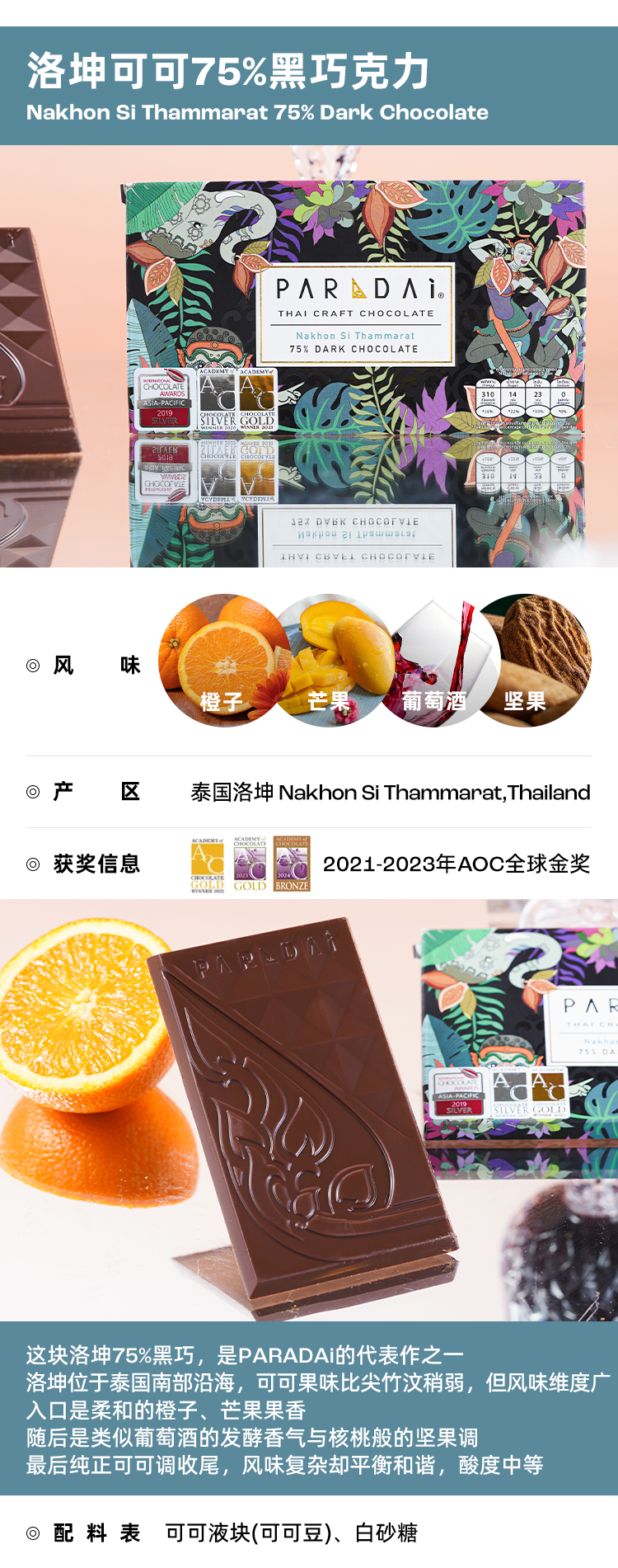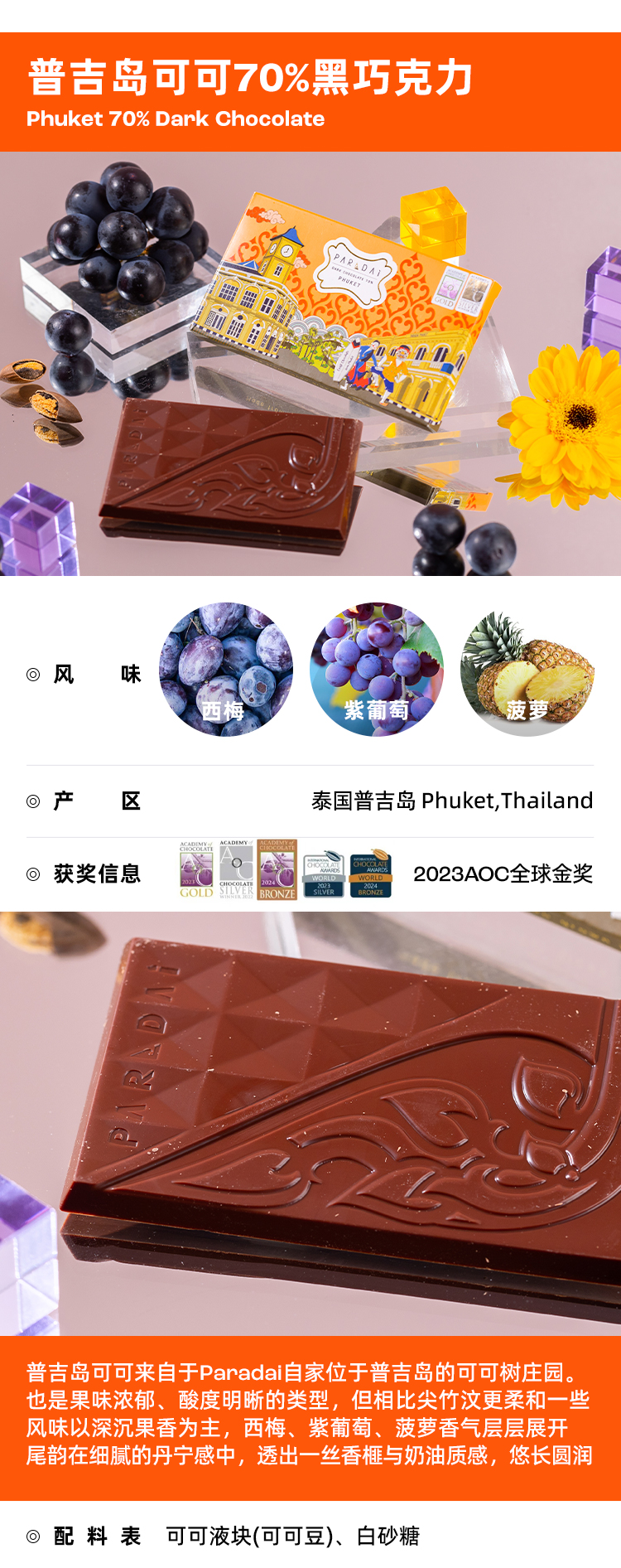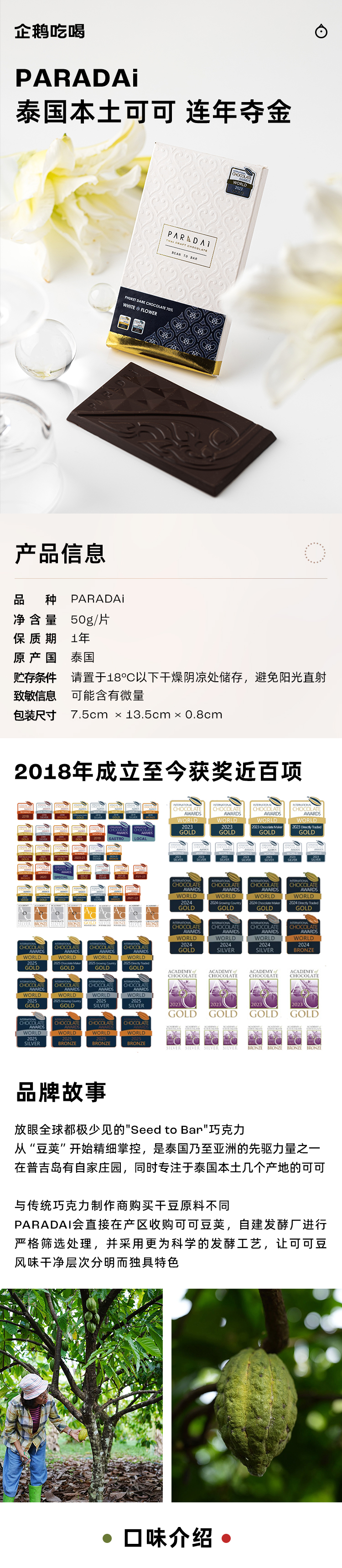 企鹅市集|泰国PARADAi黑巧克力50g 黑巧/奶巧/增味多种可选 泰国本土可可