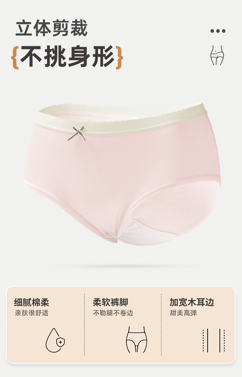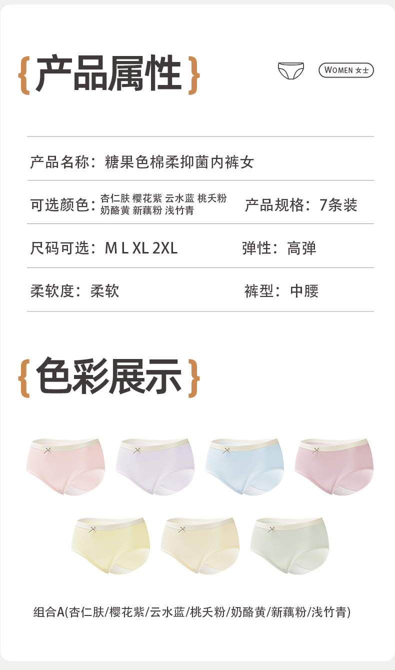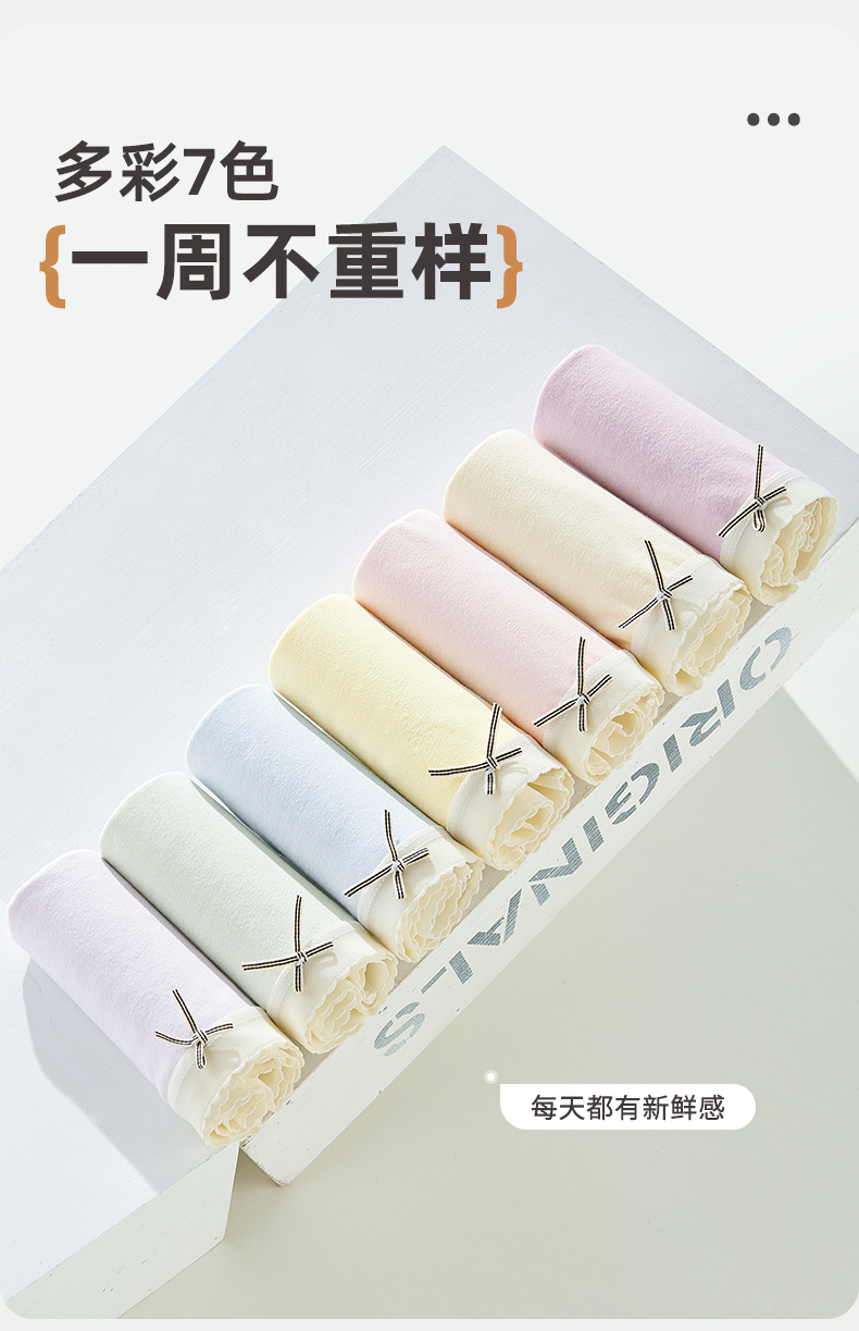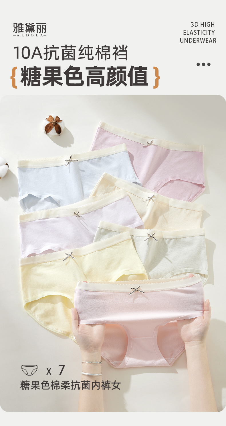 【7条装】雅黛俪女士内裤10A抗菌裆底柔软舒适透气三角裤甜美少女裤头