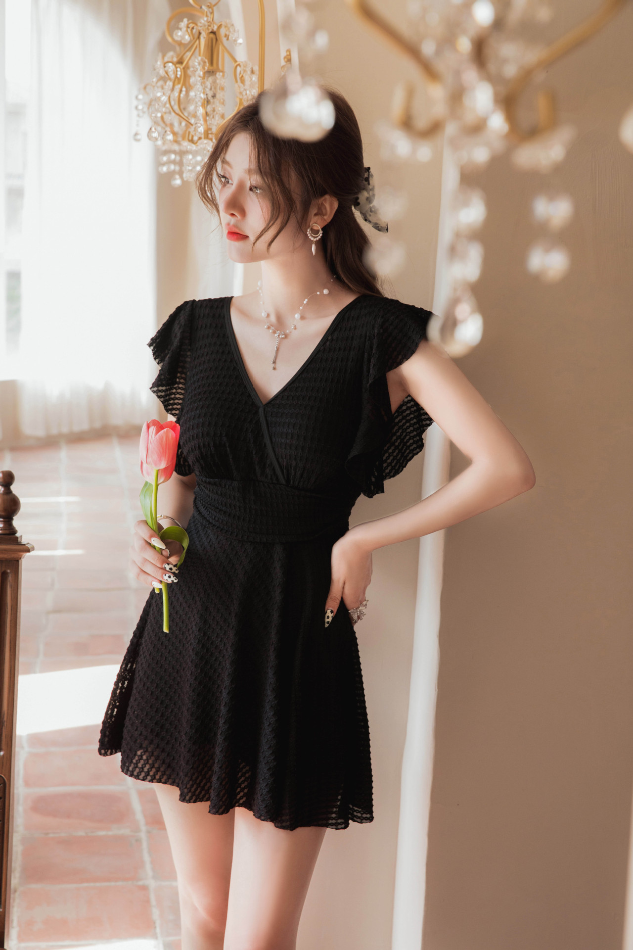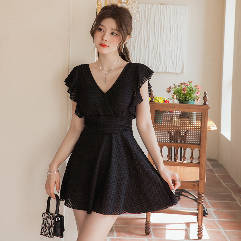 【下单送泳帽❗高级感纯欲风泳衣】清凉一夏,夏季性感“小心机” 新款纯欲风性感,保守显瘦遮肚,连体裙式游泳装L