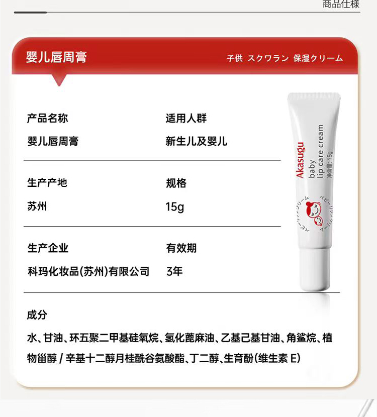 爱舒屋akasugu婴儿唇周膏15g