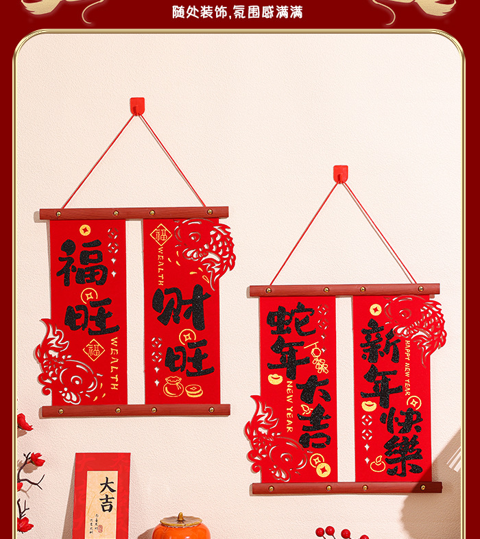 【国潮喜庆挂件,满满中国味】2025新年装饰 蛇年新款创意对联挂件 入户门客厅墙 氛围场景布置用品-QQ