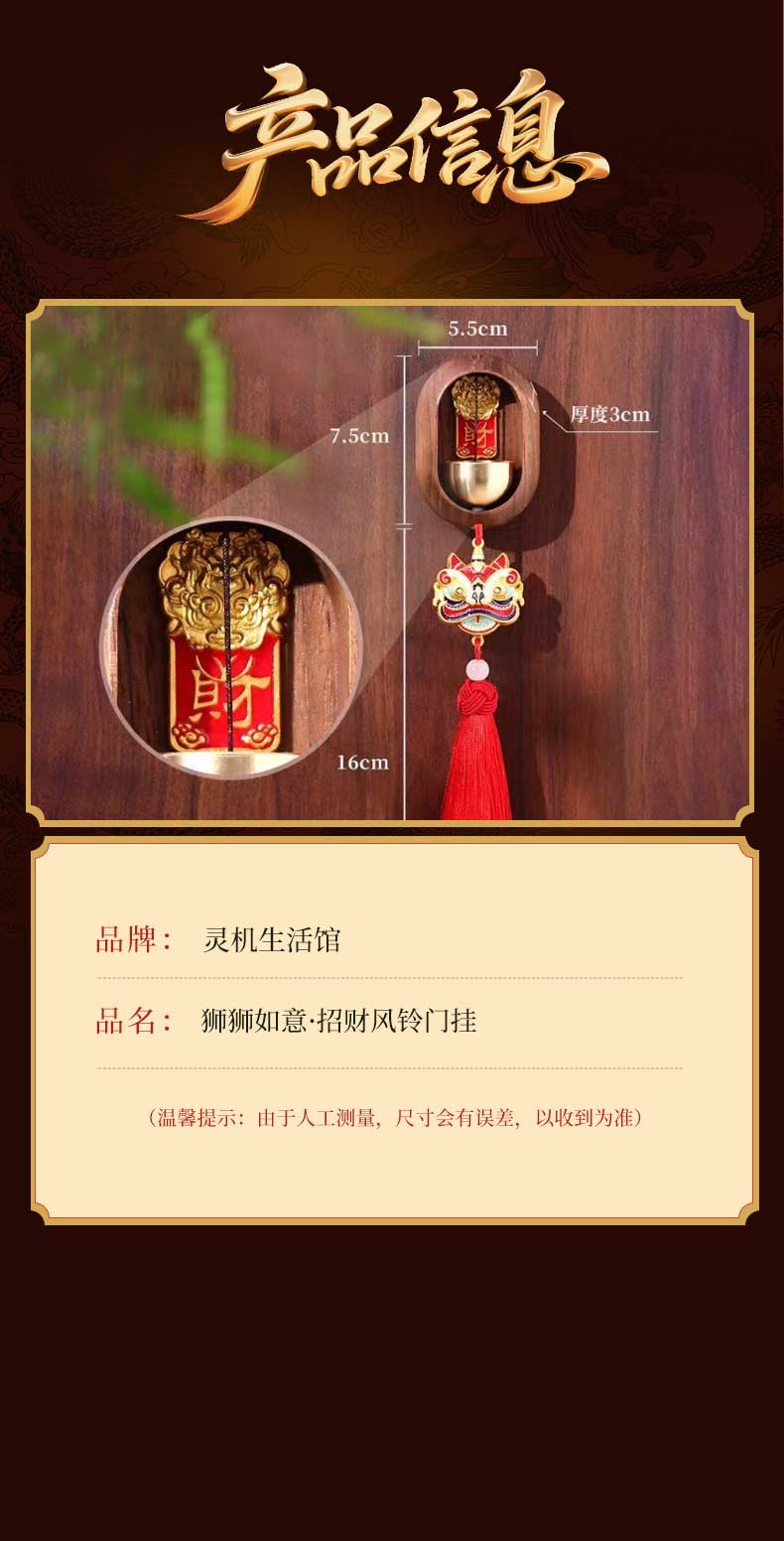 灵机生活馆2026马年狮狮如意风铃门挂饰家居