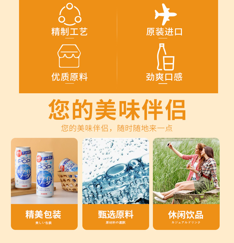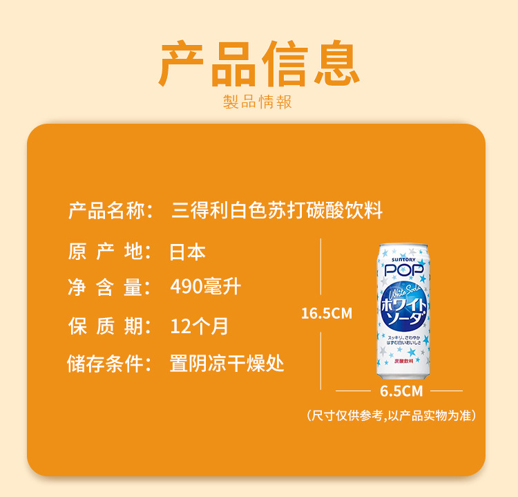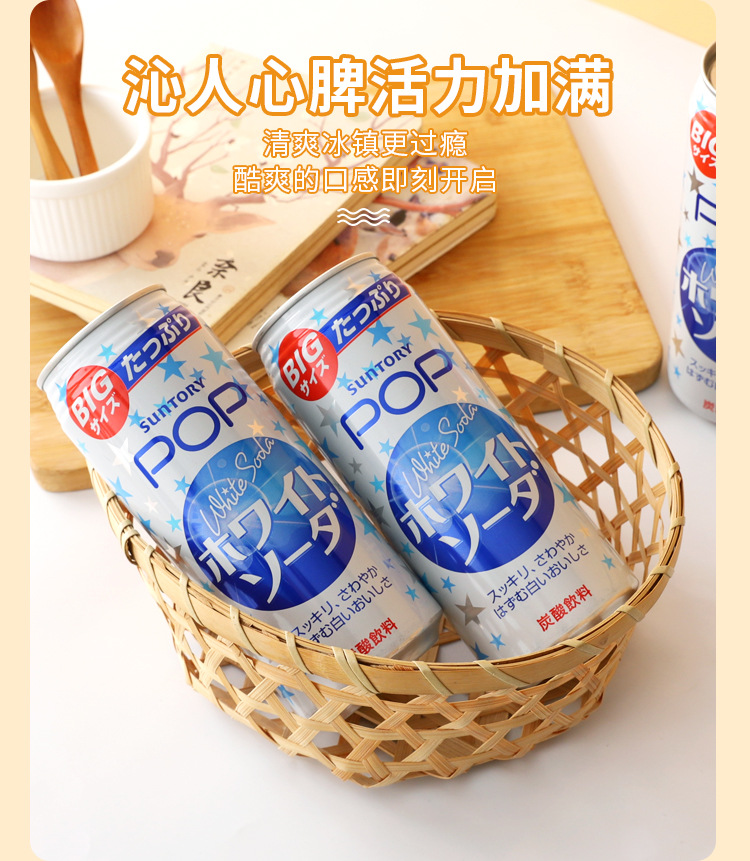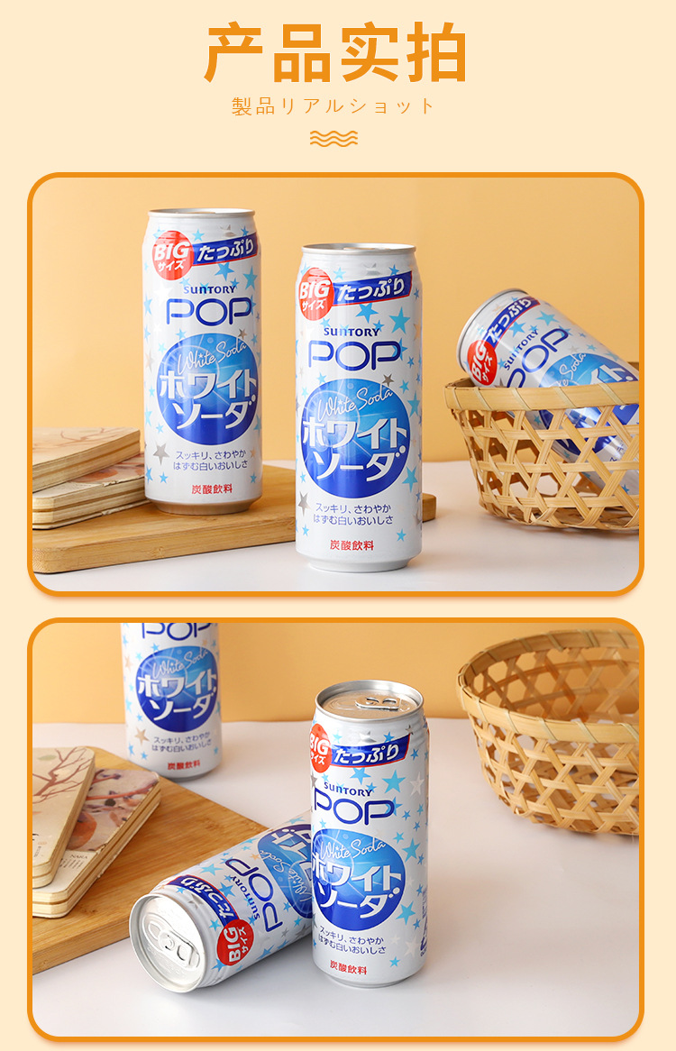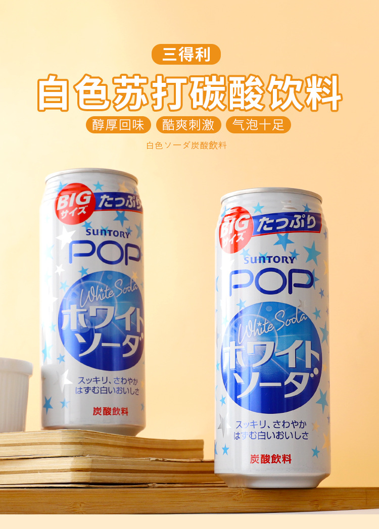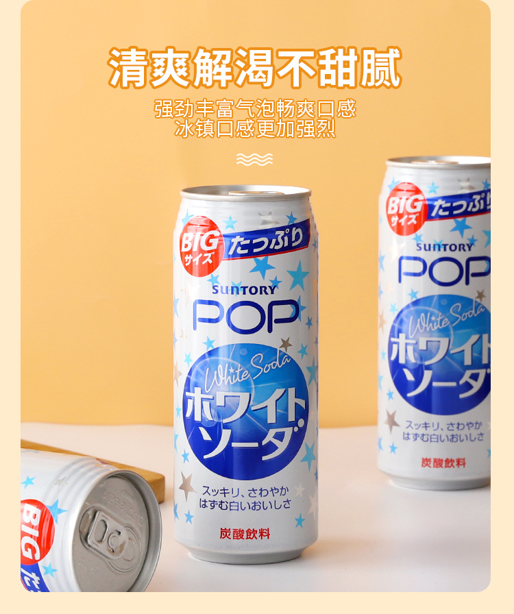 三得利POP含乳SODA碳酸饮料柔和苏打汽水490ml/罐网红汽水进口SUNTORY