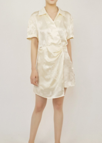 盛唐牡丹 |梅兰竹菊真丝冠乐皱斜襟旗袍裙