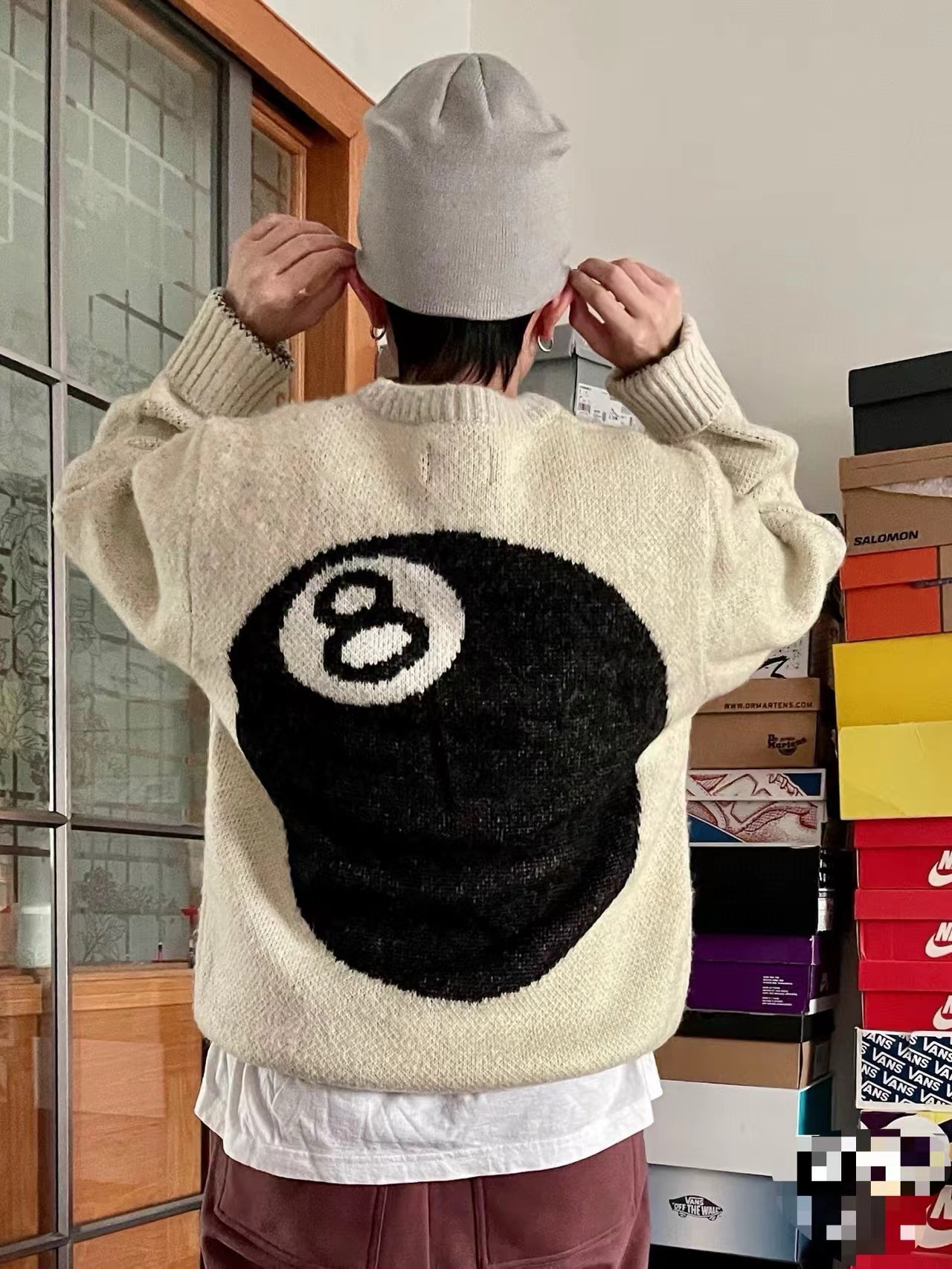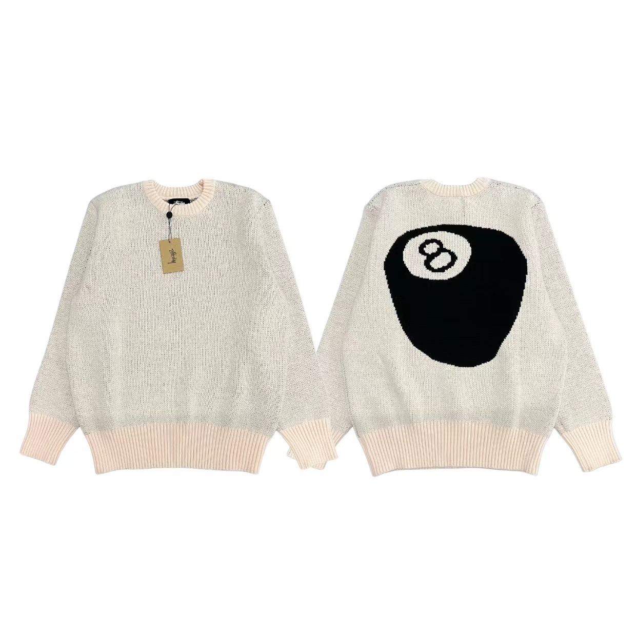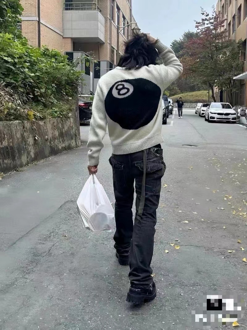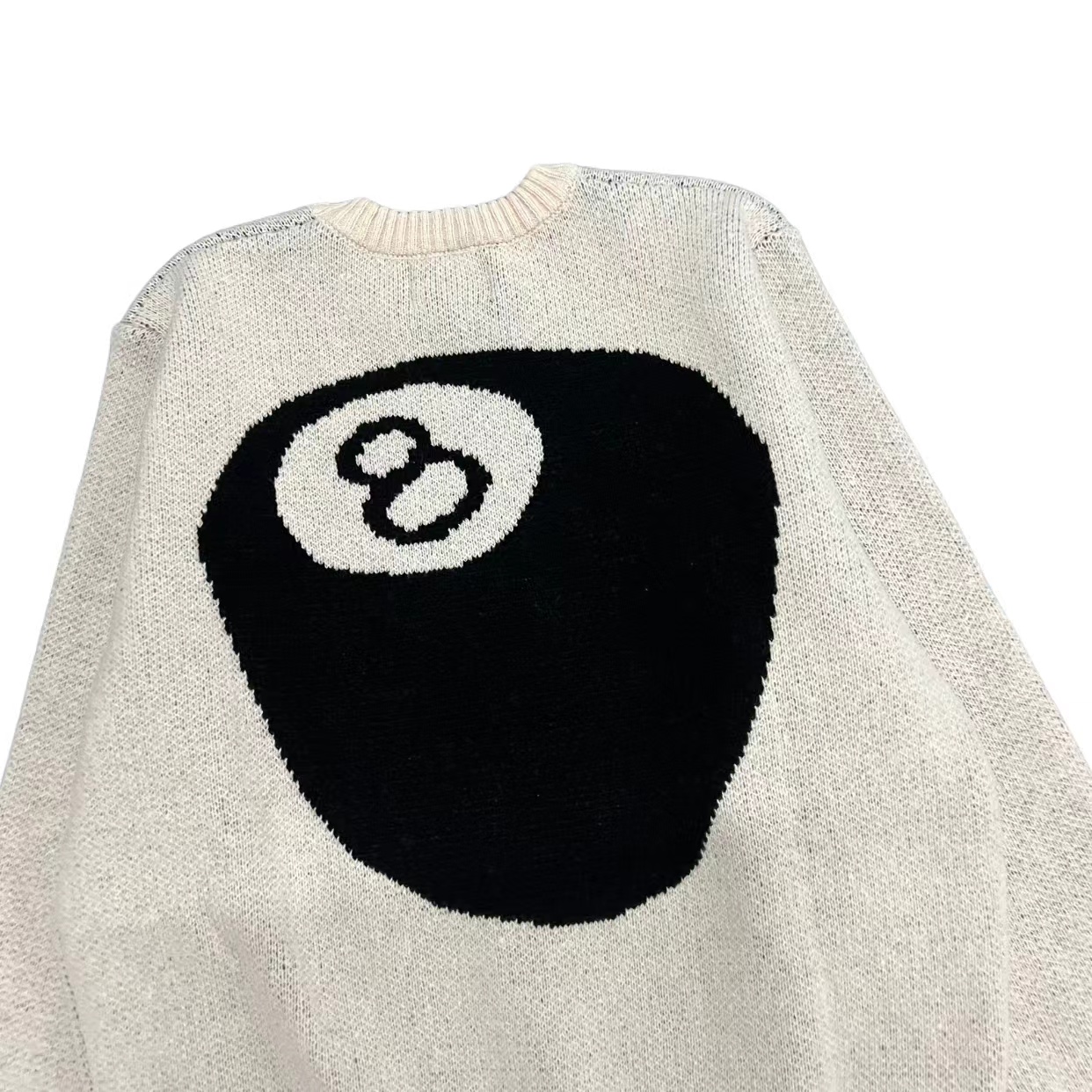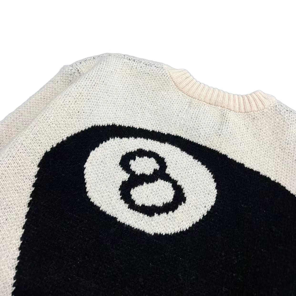 后背台球黑八提花情侣圆领针织毛衣 定制纯棉混纺针织面料 单件克重高达 600g 手感舒适不扎人