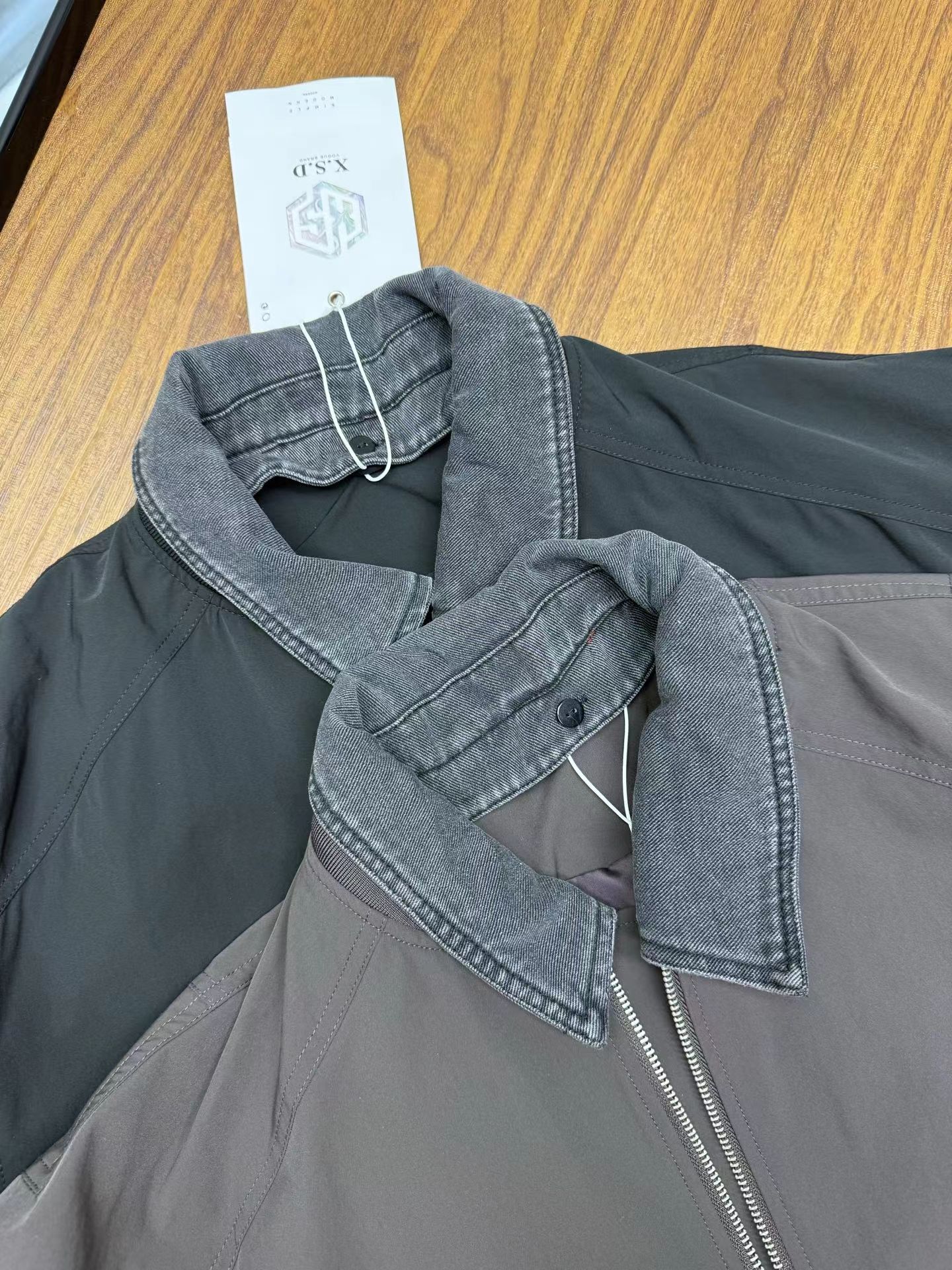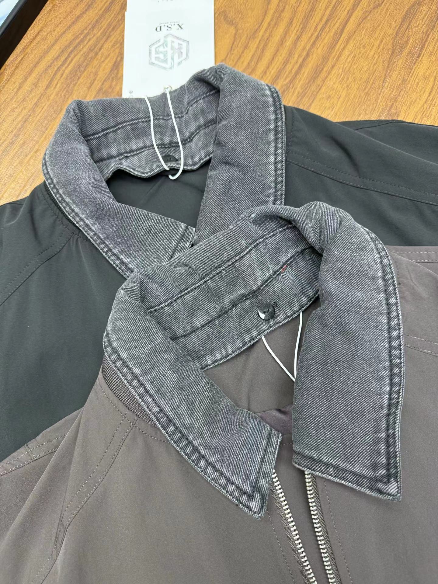 新款美式潮牌拼接牛仔外套男春秋季潮牌痞帅休闲夹克设计感男 早春新款可脱卸牛仔领棒球服外套宽松阔版男女情侣 25初春款 男女款纯色翻领拉链夹克外套.定制面料,沙卡全棉,面料防预缩工艺,不缩水不褪色,定制主标水洗!