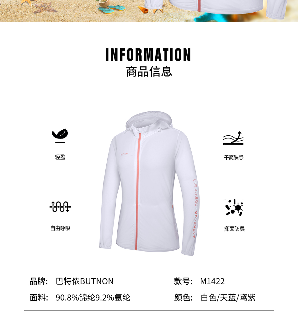 1422巴特侬女士运动户外防晒轻薄梭织风衣夏季新款 商品图2