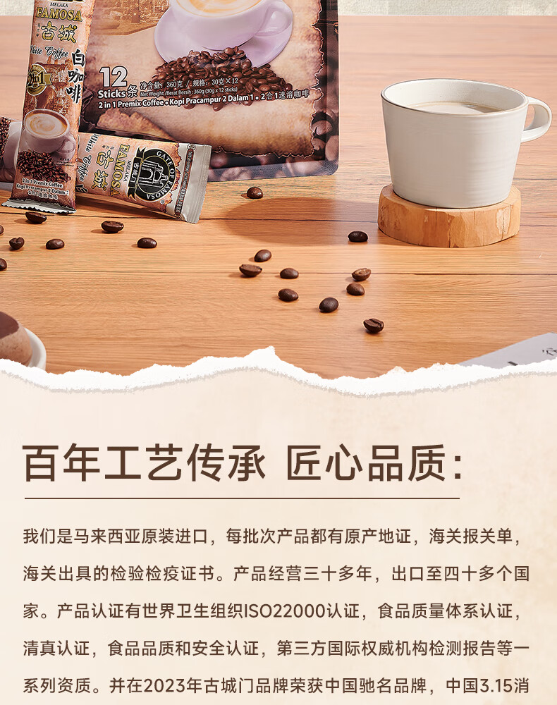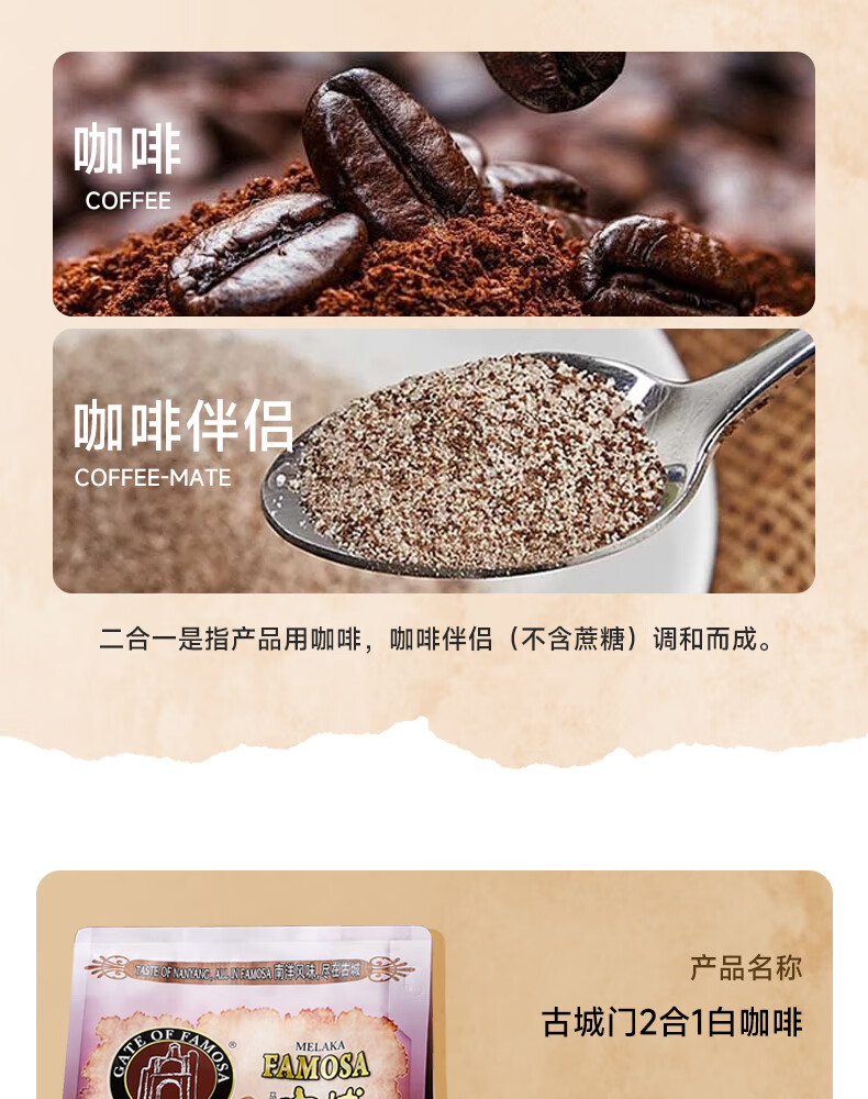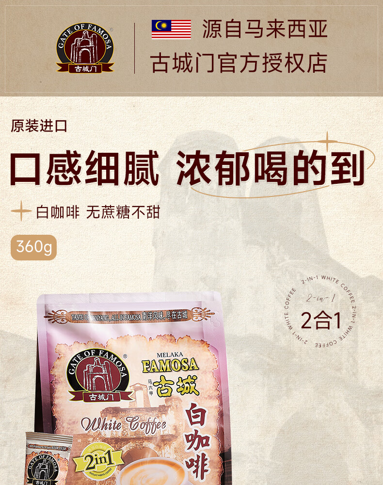 马来西亚MELAKA FAMOSA古城门 · 2合1速溶白咖啡 12条*30g|品牌直发