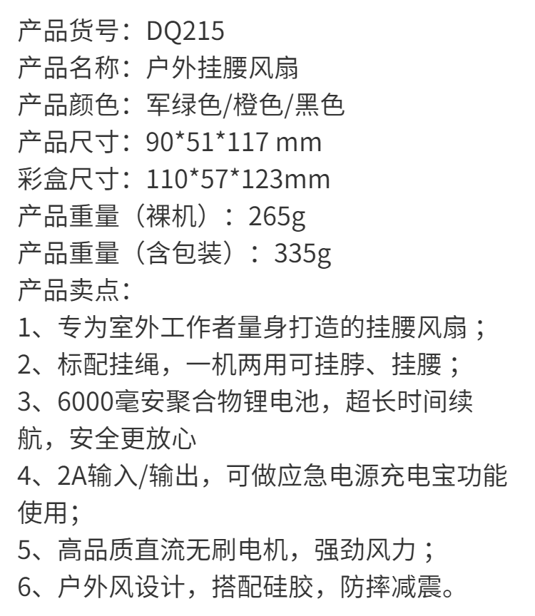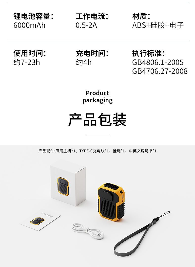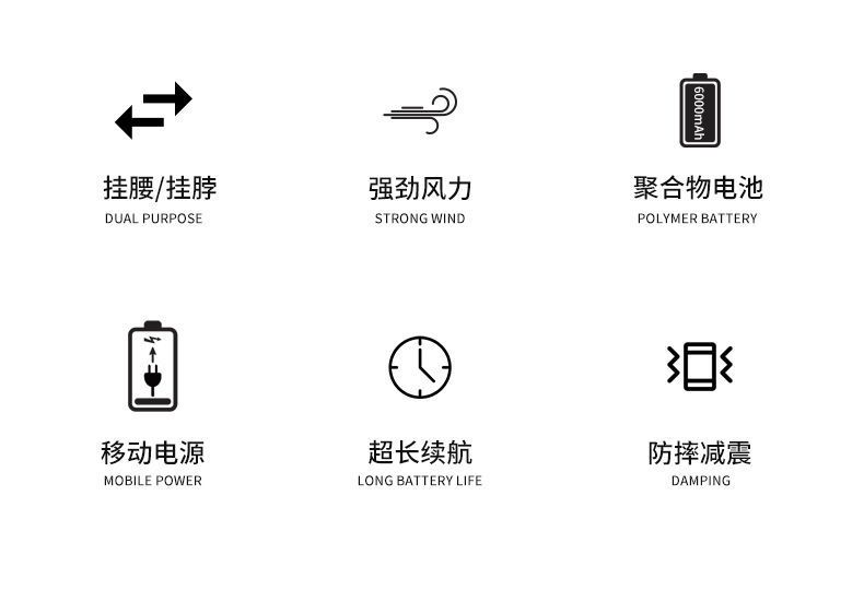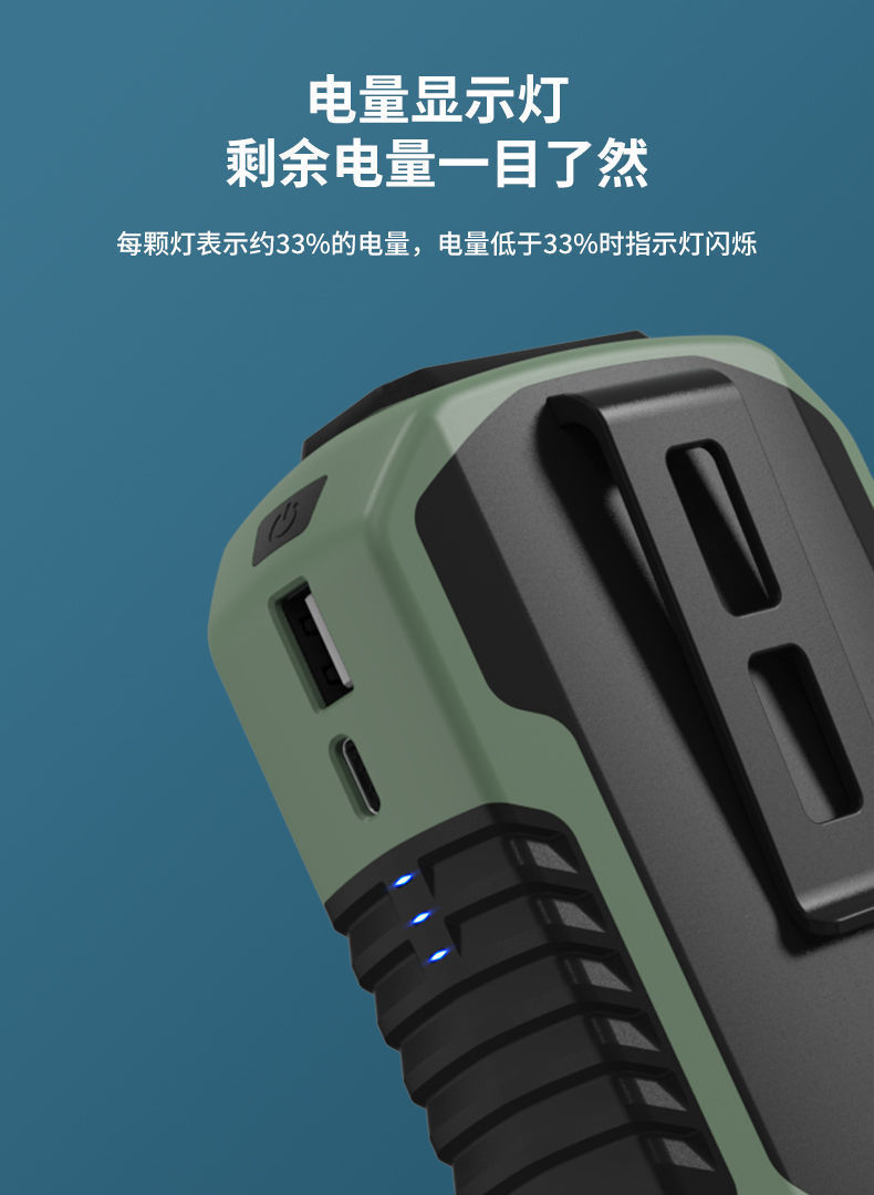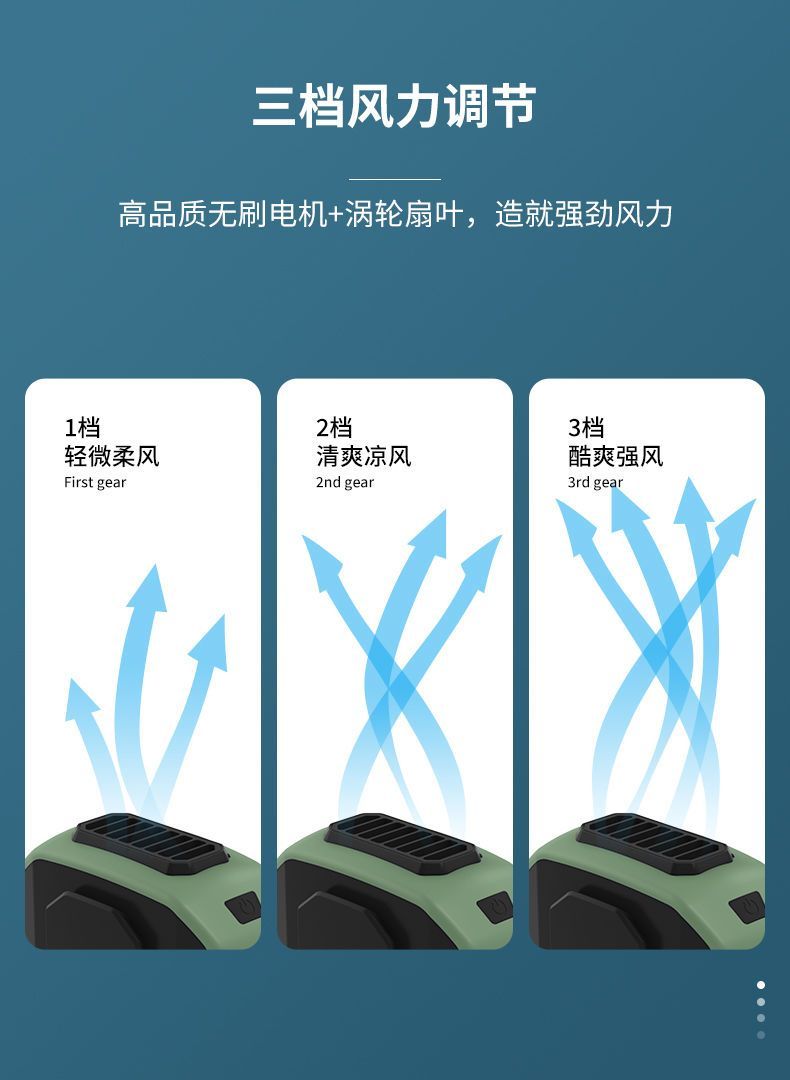 挂腰风扇挂脖随身充电宝功能迷你家用户外学生带手电大风力大功率