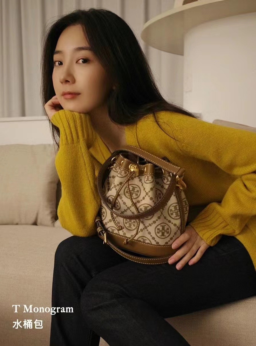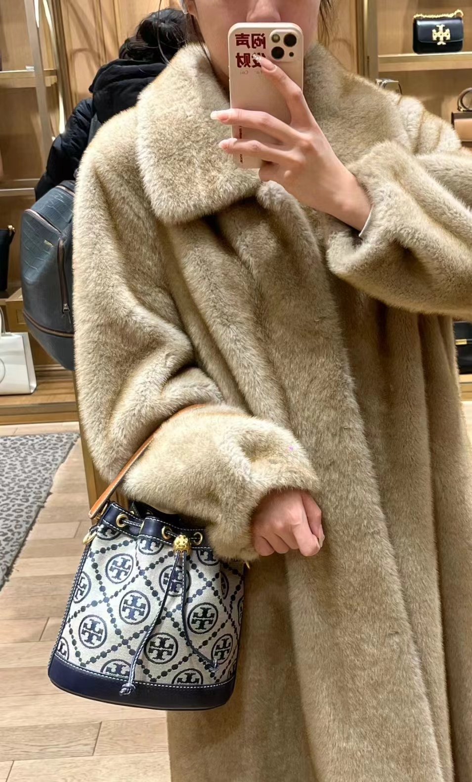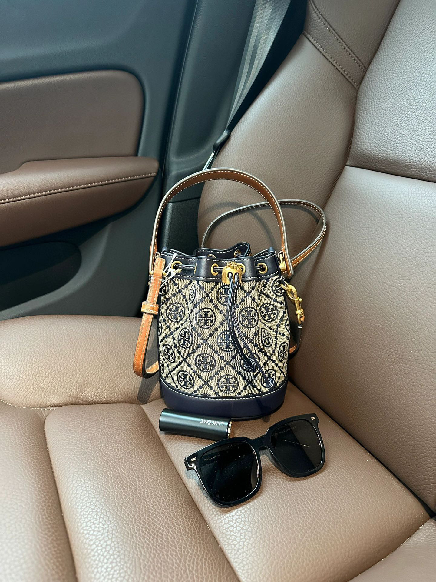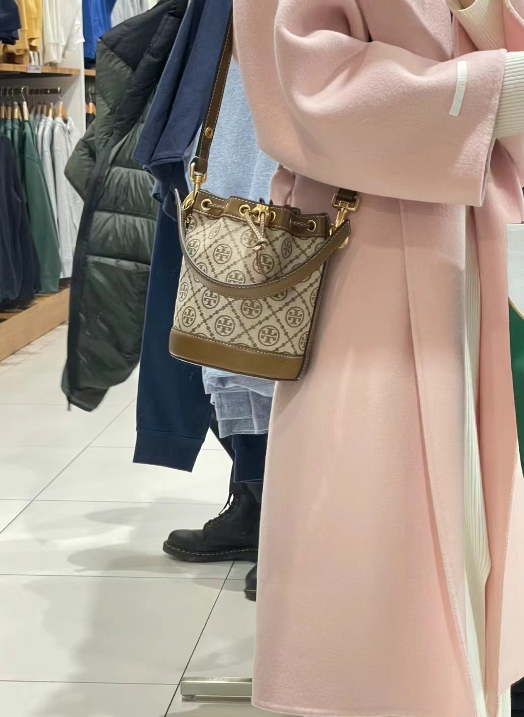 ToryBurch心心念的水桶包,经典老花款,秋冬搭配应该很好看~