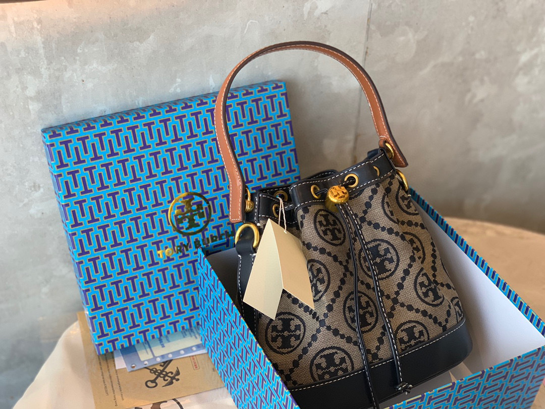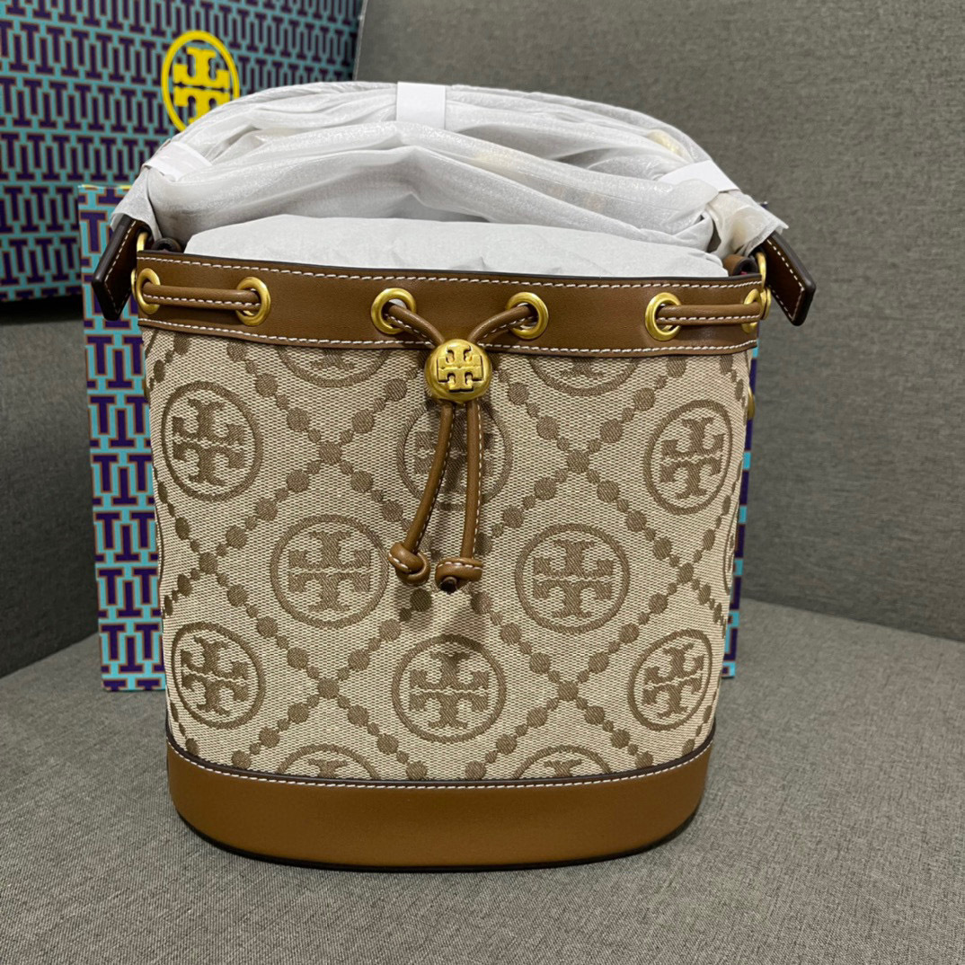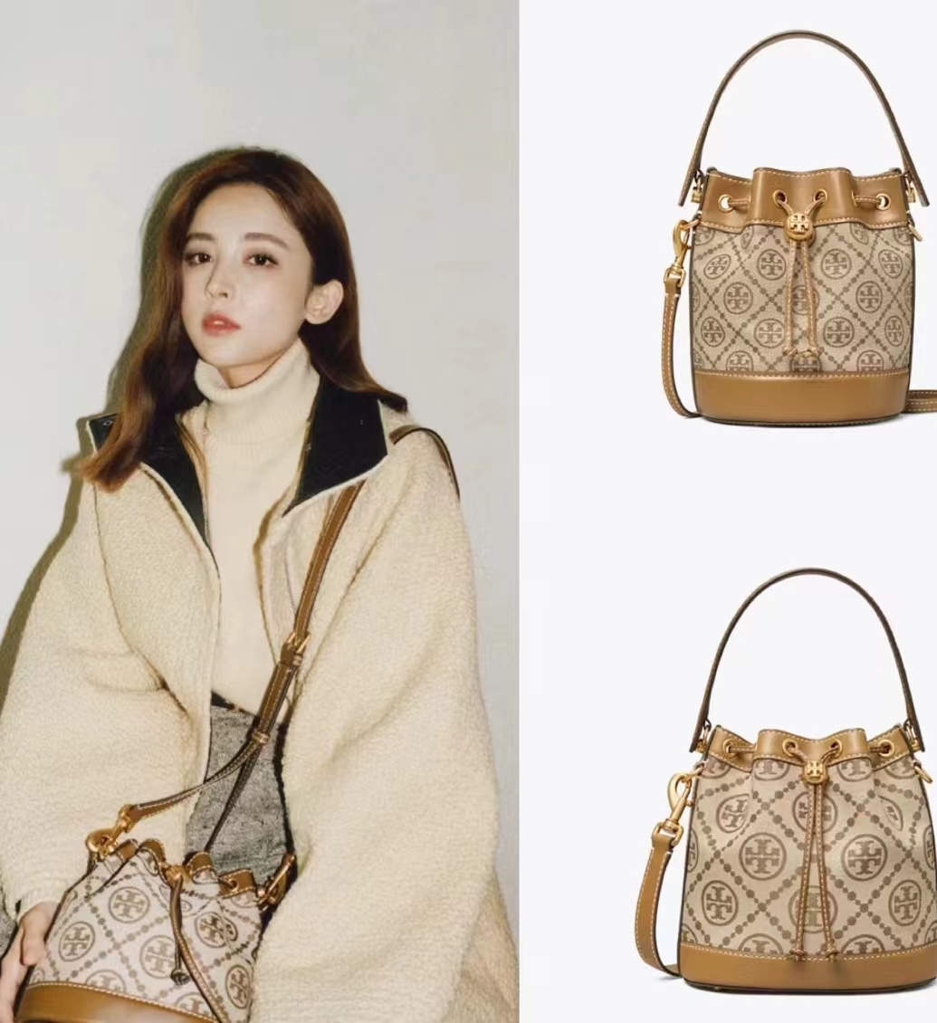 ToryBurch心心念的水桶包,经典老花款,秋冬搭配应该很好看~