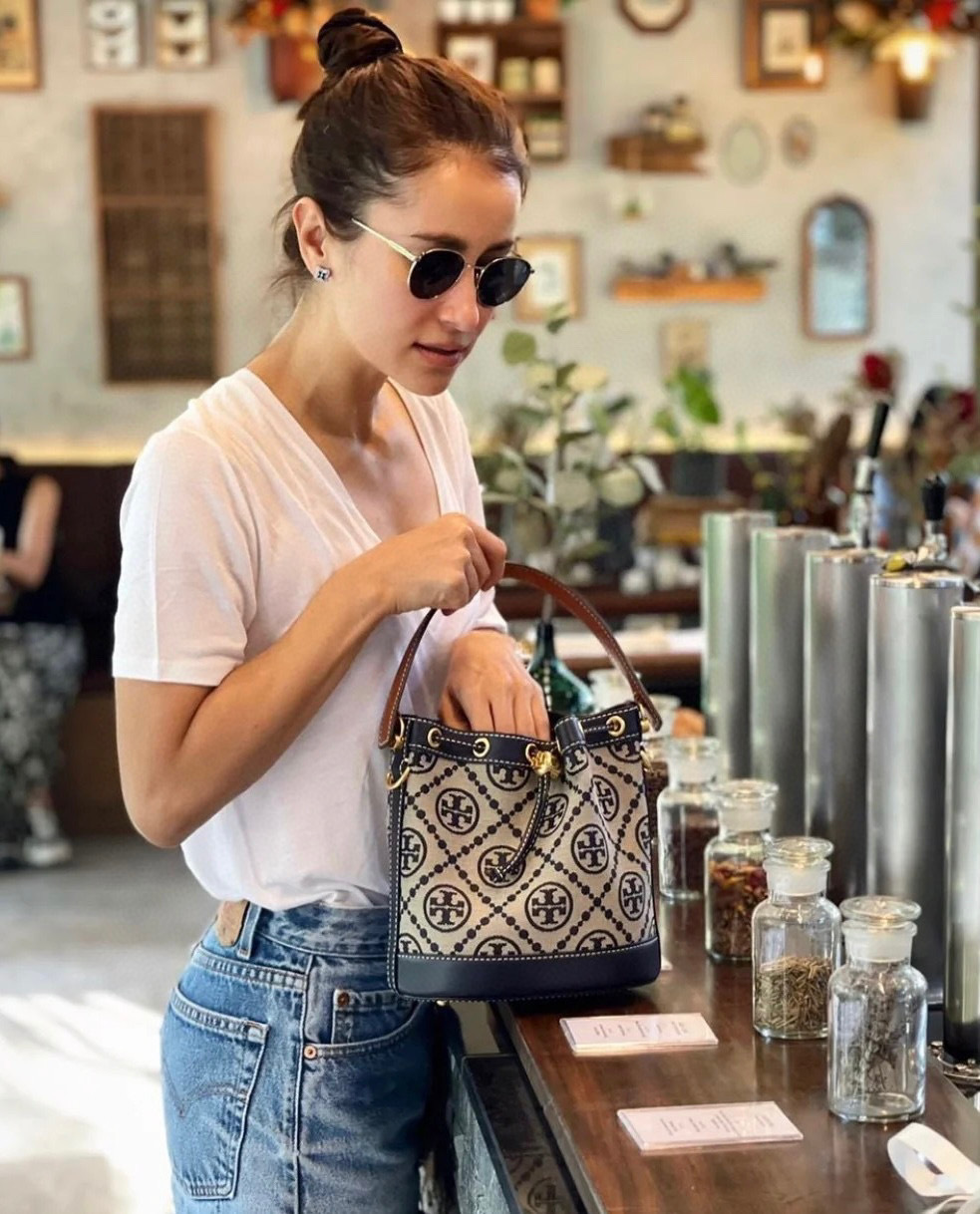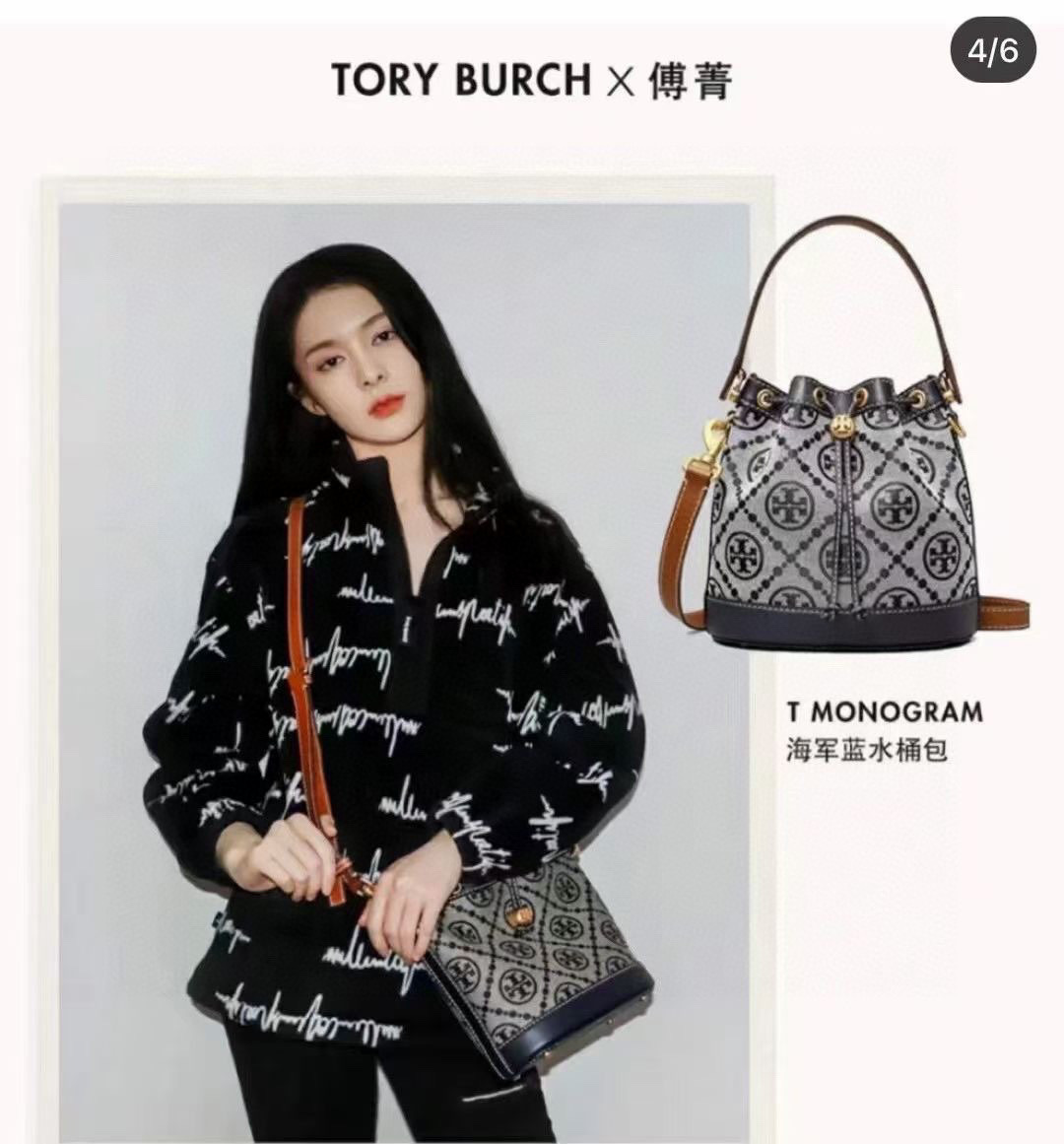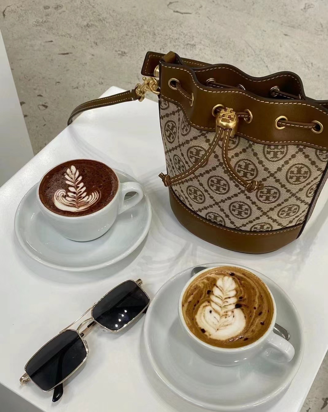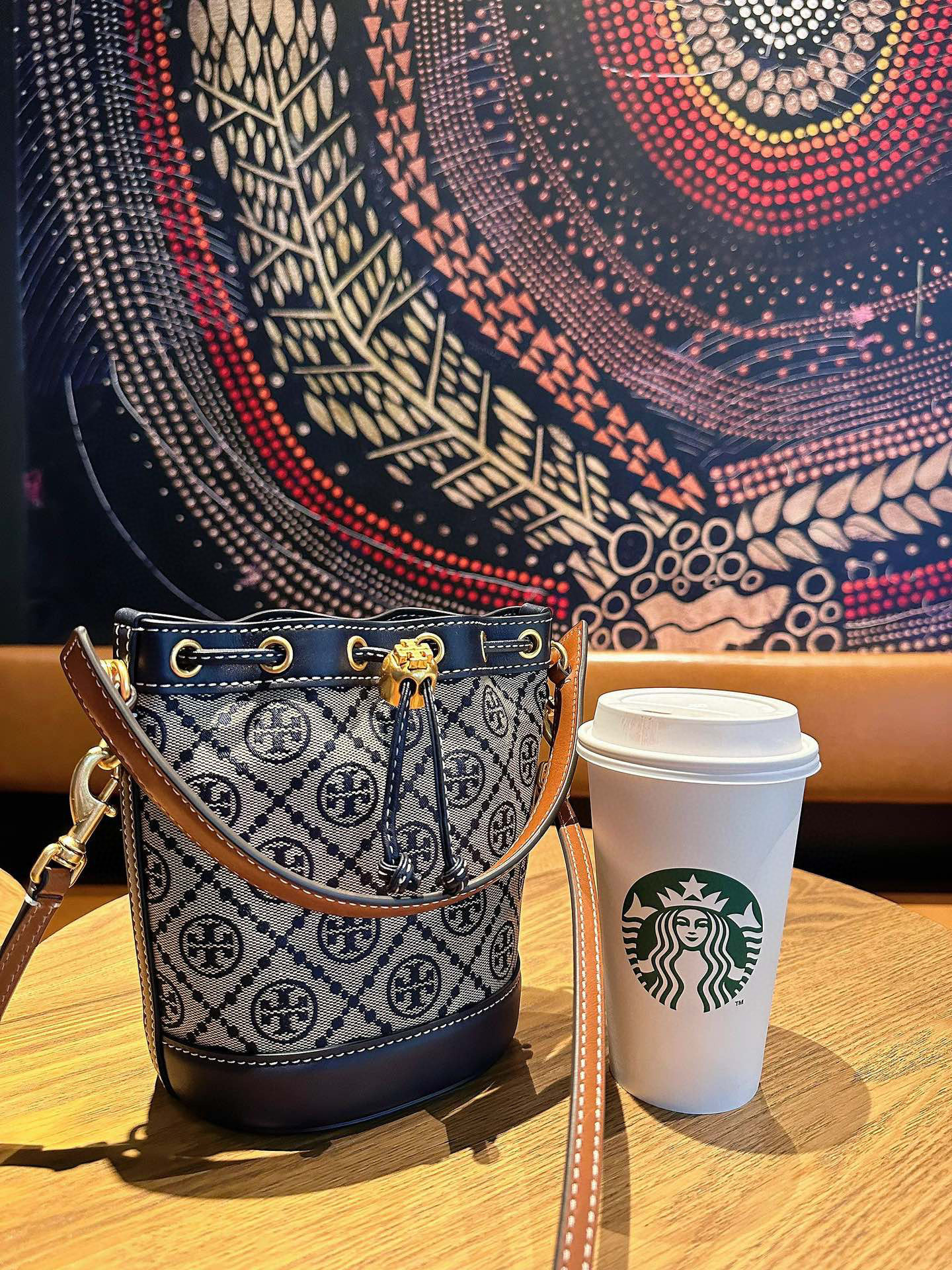 ToryBurch心心念的水桶包,经典老花款,秋冬搭配应该很好看~