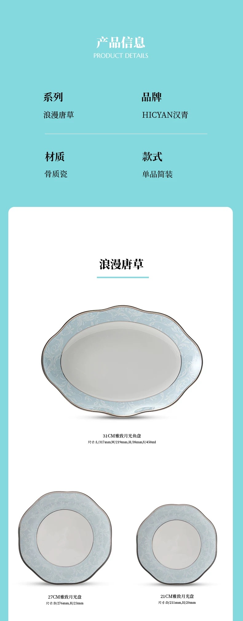 【6F】多样屋HICYAN汉青国瓷「浪漫唐草」蓝色雅致餐具单品 中式碗碟盘 简约精致轻奢