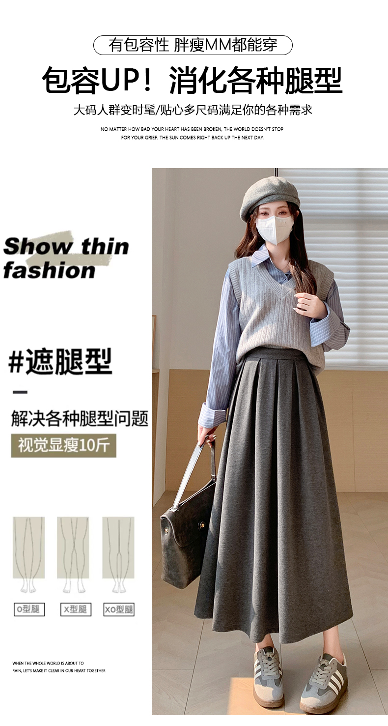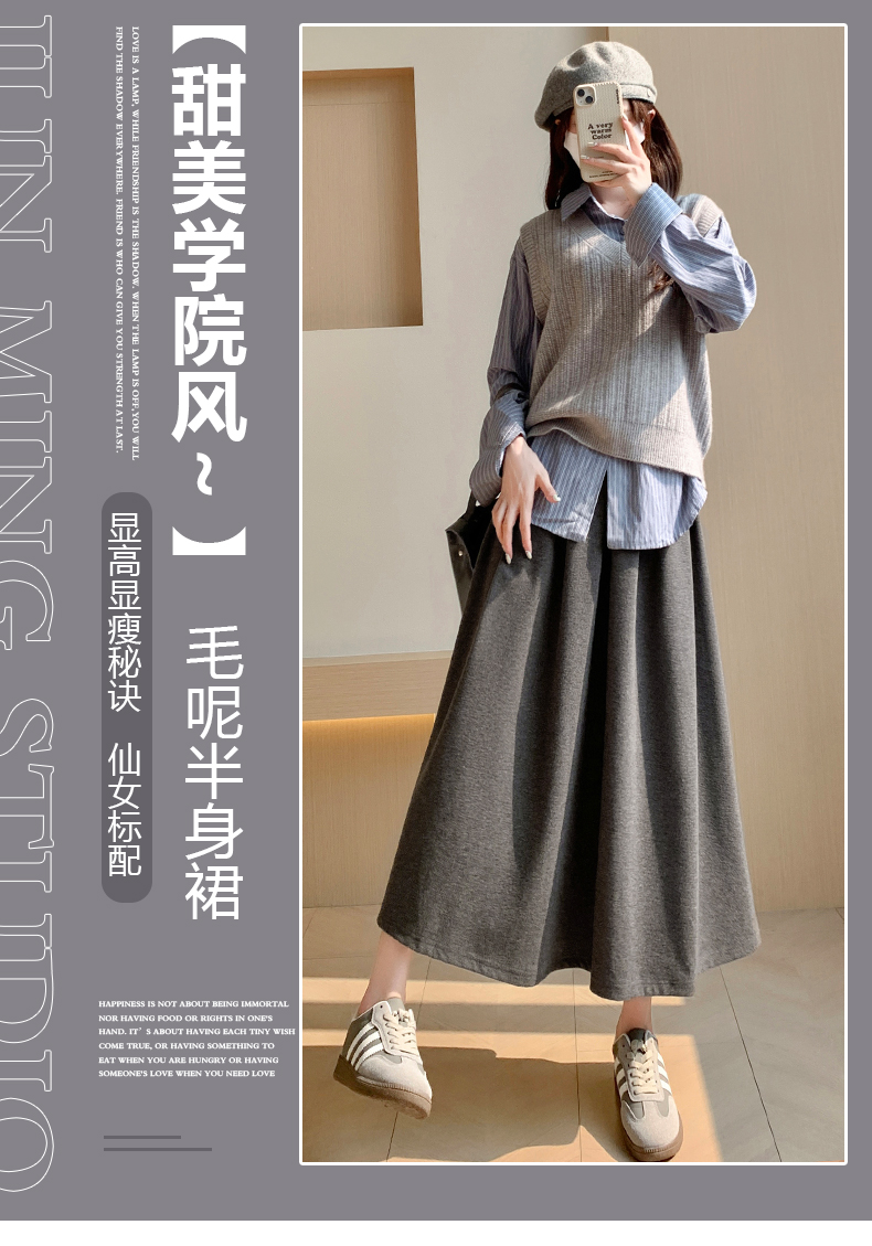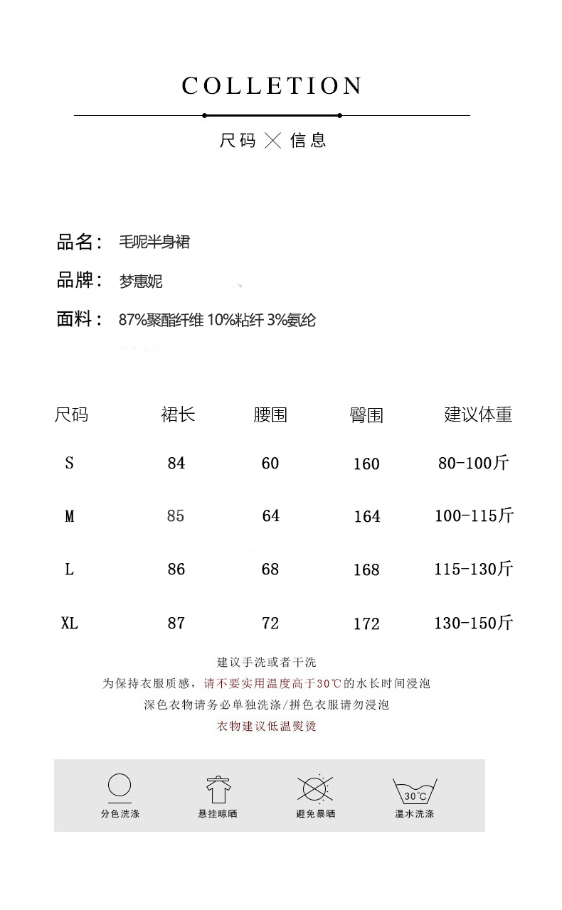 任2条减10【显高显瘦 保暖遮肉】梦惠妮法式优雅毛呢裙半身裙 常规款/加绒款可选