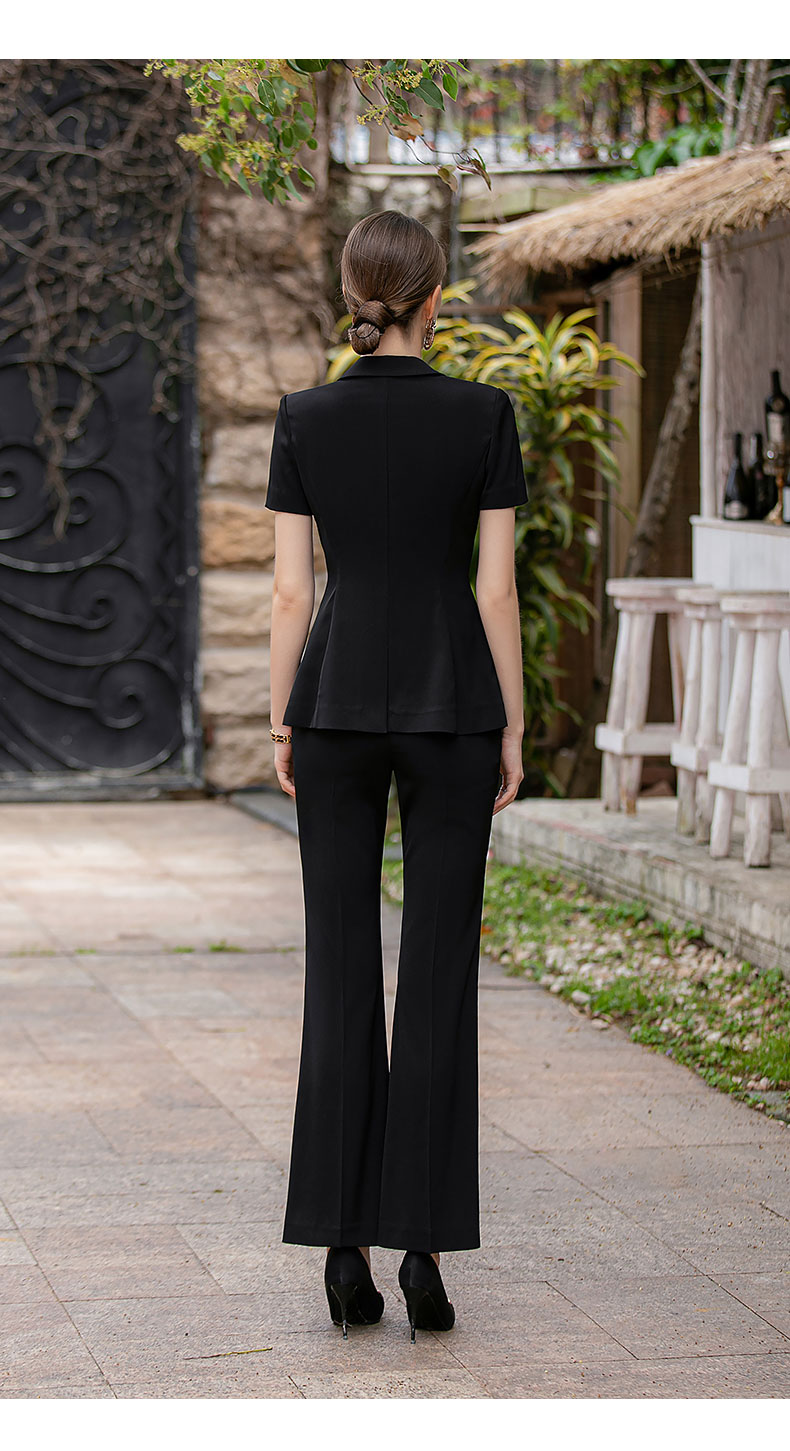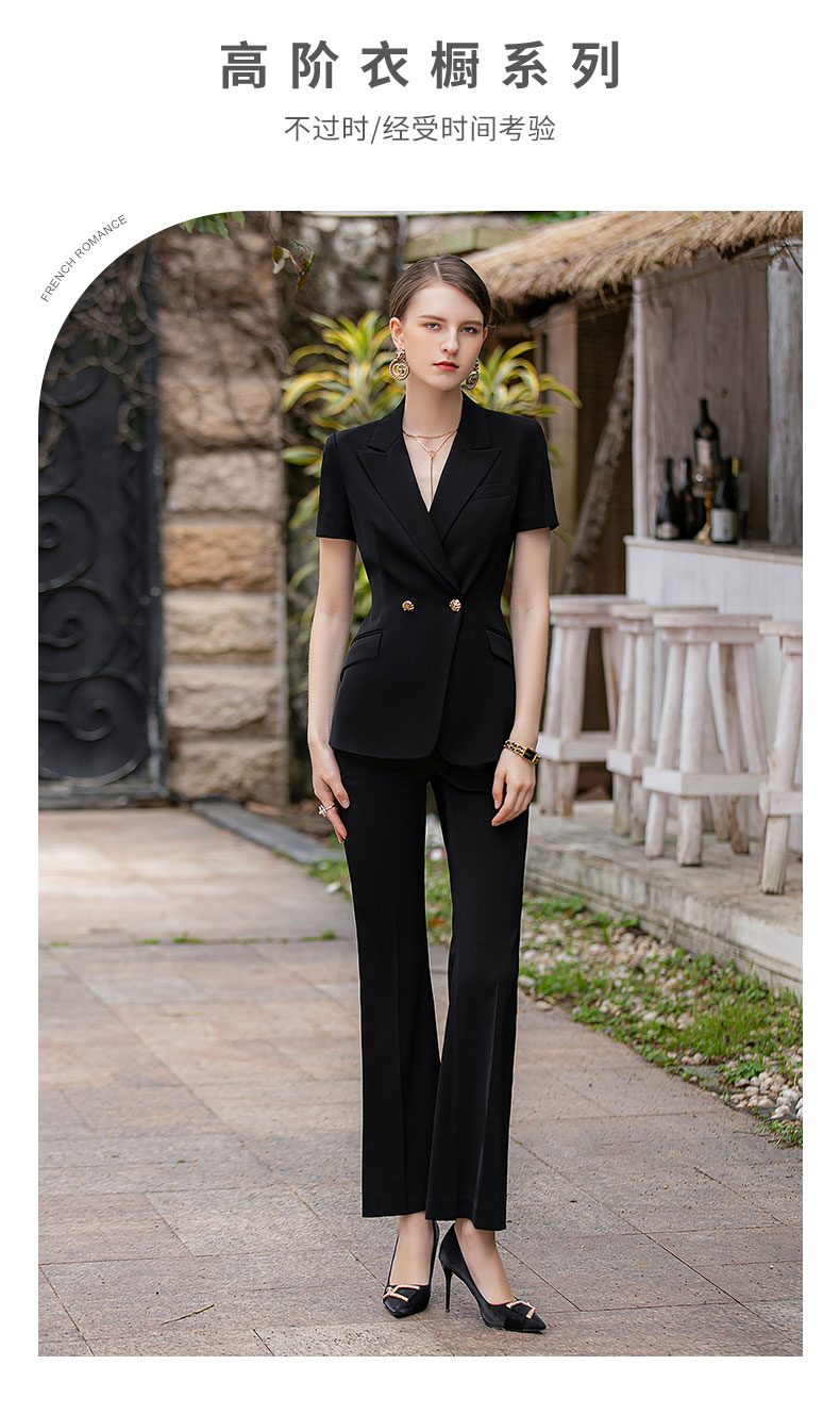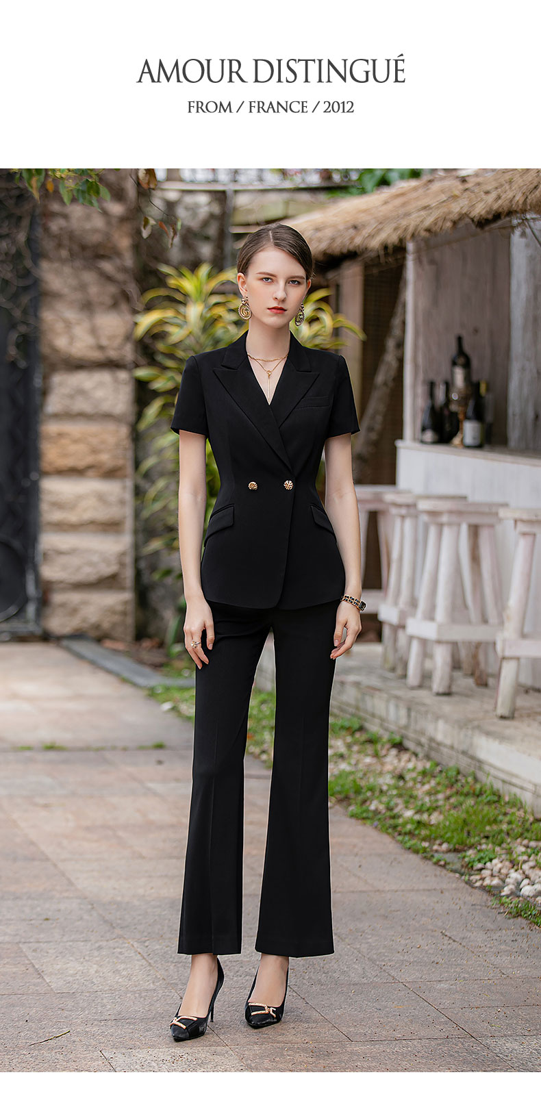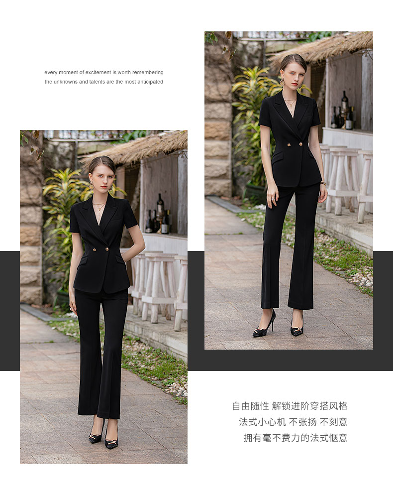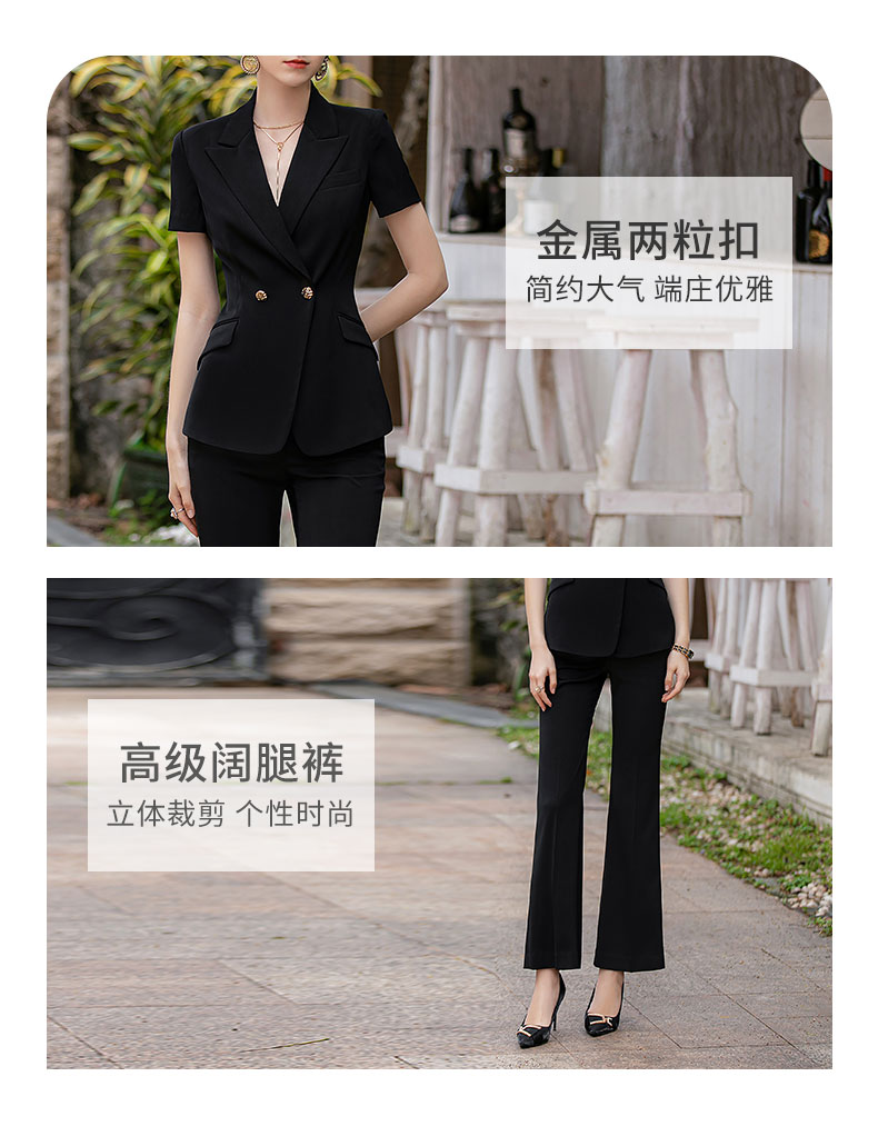 AD高级感阔腿裤西装套装女气场强大职业装金属两粒扣黑色西服正装